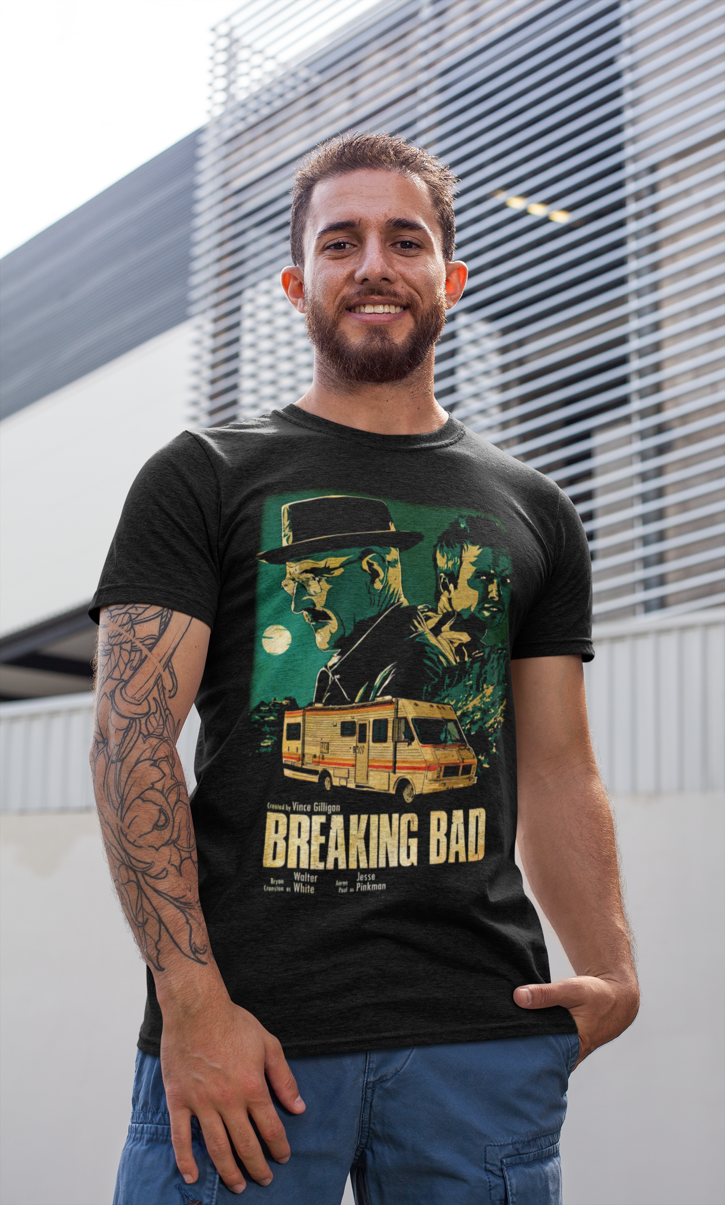 Unikatowa koszulka bawełniana z oryginalnym nadrukiem z serialu Breaking Bad. To niezwykły element garderoby dla prawdziwych serialomaniaków.