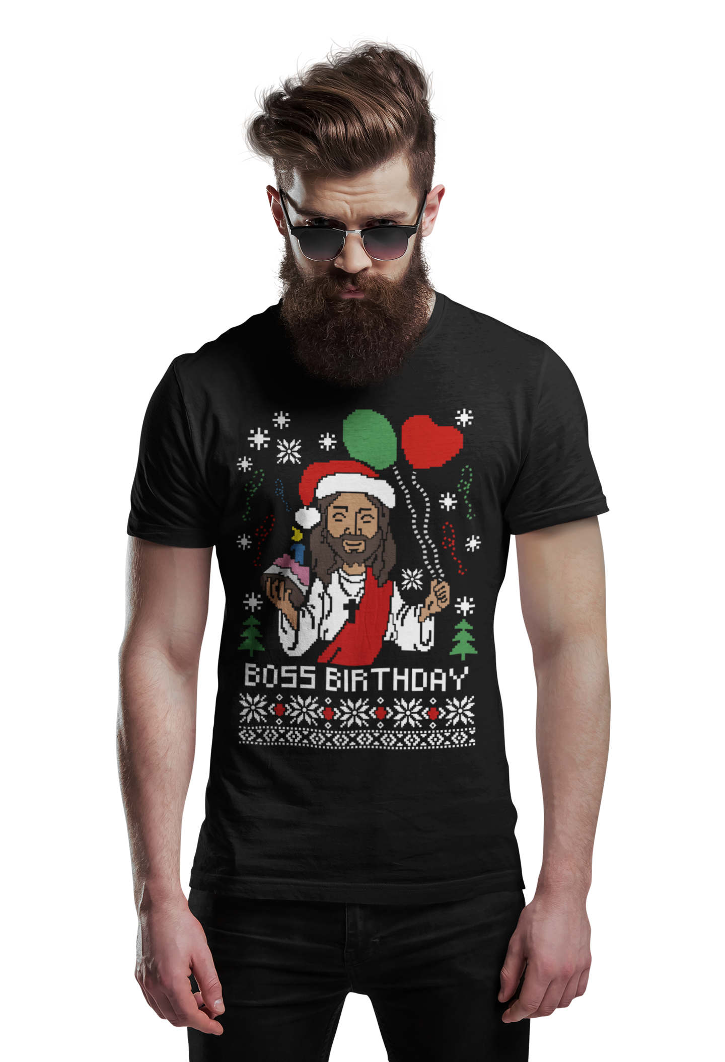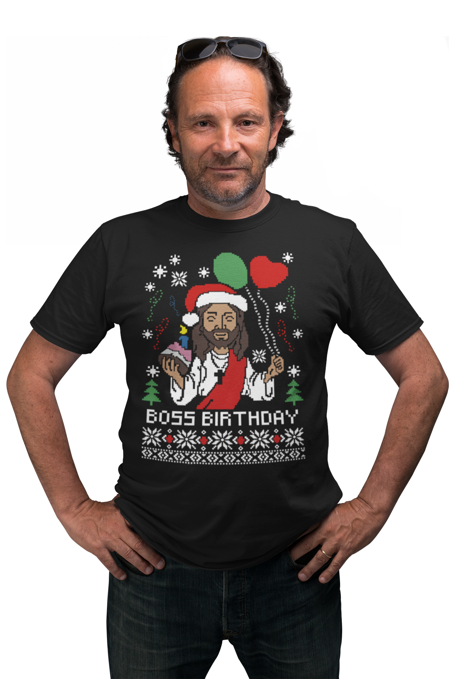 MĘSKA KOSZULKA ŚWIĄTECZNA BOŻE NARODZENIE JEZUS BOSS BIRTHDAY