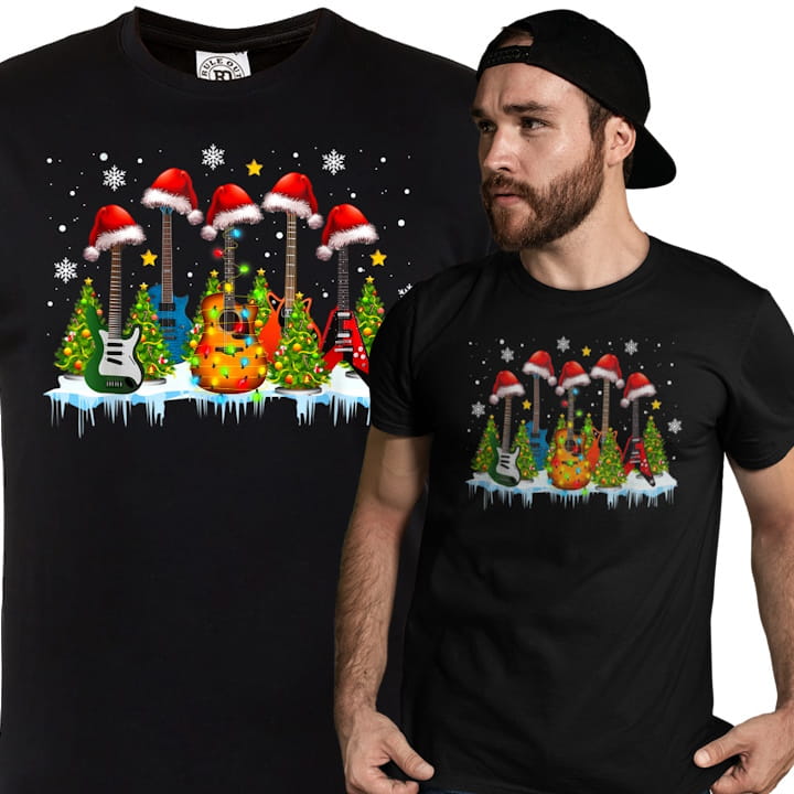 MĘSKA KOSZULKA ŚWIĄTECZNA DLA MUZYKA GITARY