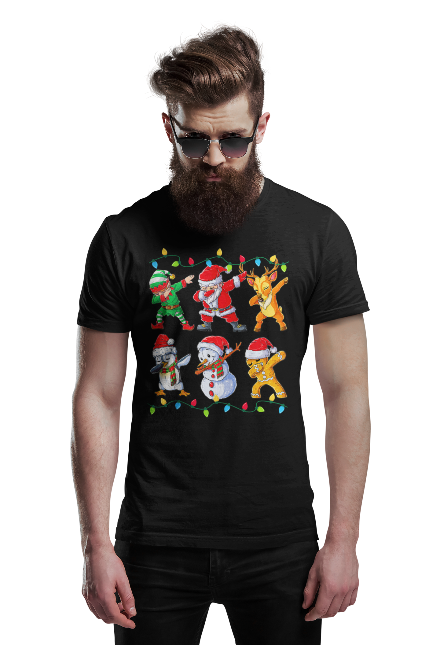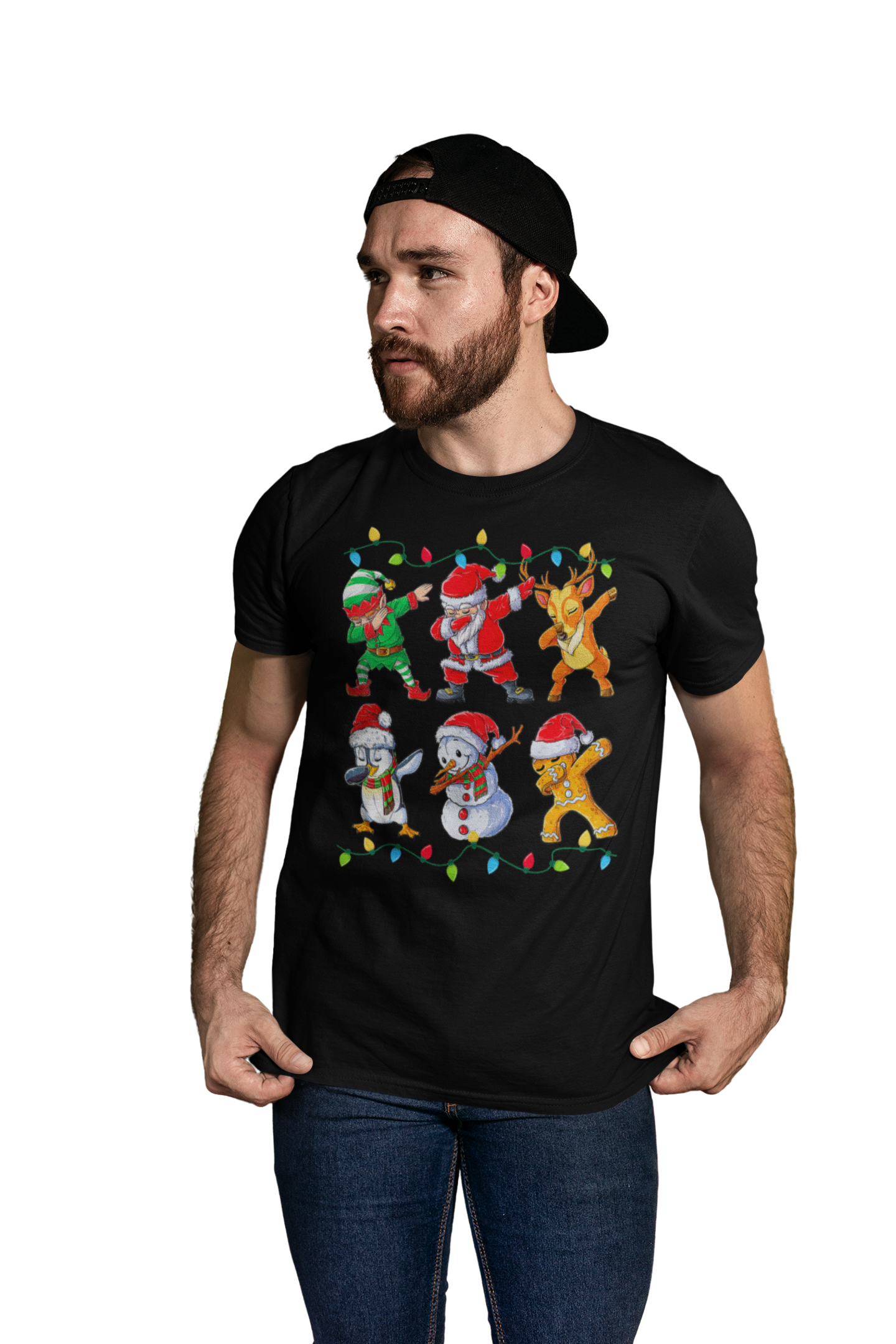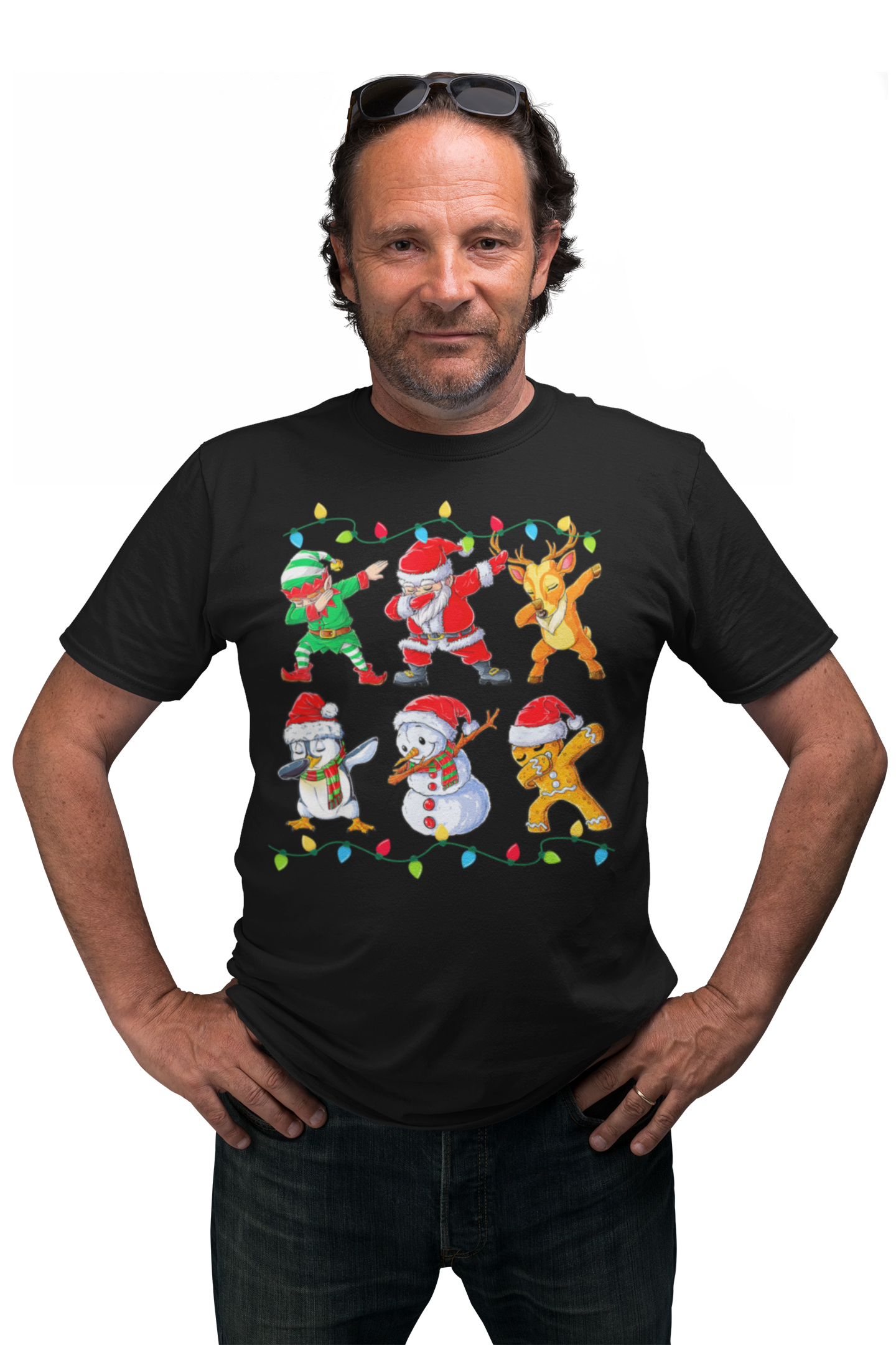 MĘSKA KOSZULKA ŚWIĄTECZNA EKIPA ŚWIĘTEGO MIKOŁAJA DABBING LAMPKI