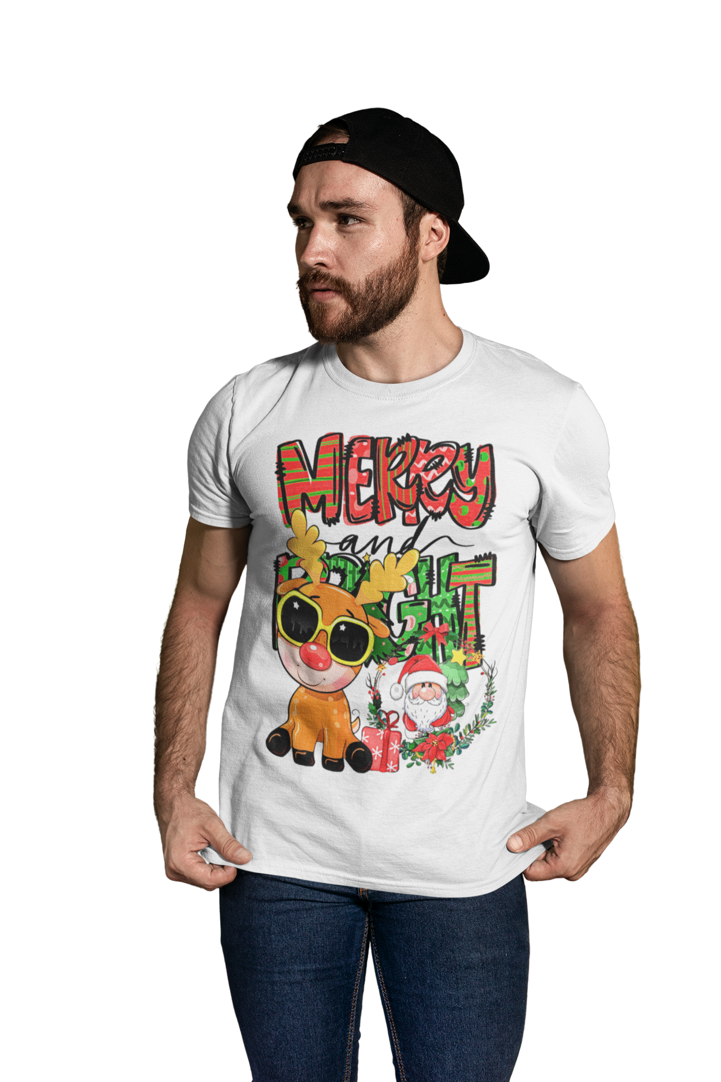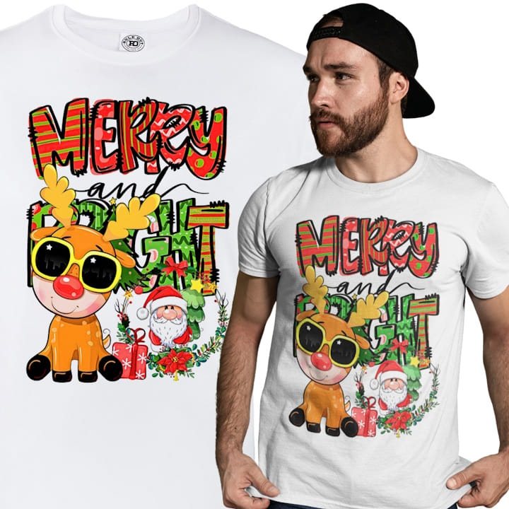 MĘSKA KOSZULKA ŚWIĄTECZNA MERRY AND BRIGHT RENIFER ŚWIĘTY MIKOŁAJ