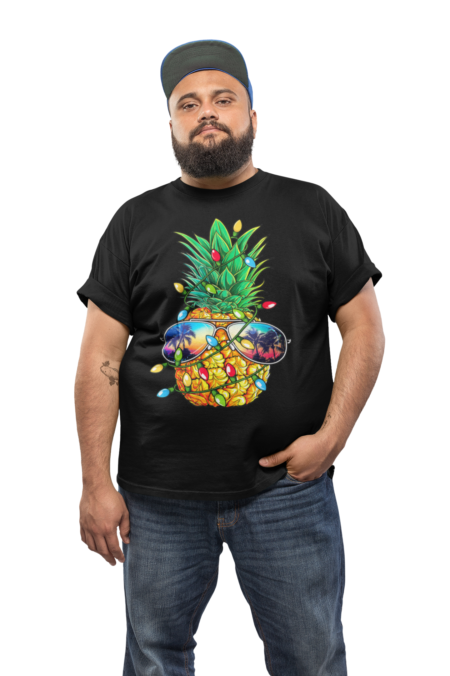 MĘSKA KOSZULKA ŚWIĄTECZNA ŚWIĄTECZNY ANANAS LAMPKI