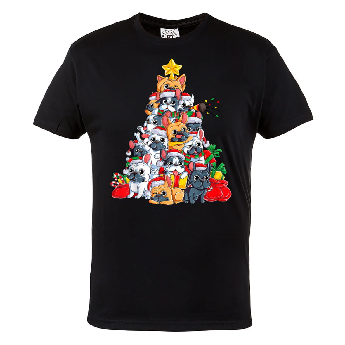 MĘSKA KOSZULKA ŚWIĄTECZNA Z NADRUKIEM BULDOGI FRANCUSKIE FRENCHIE CHOINKA
