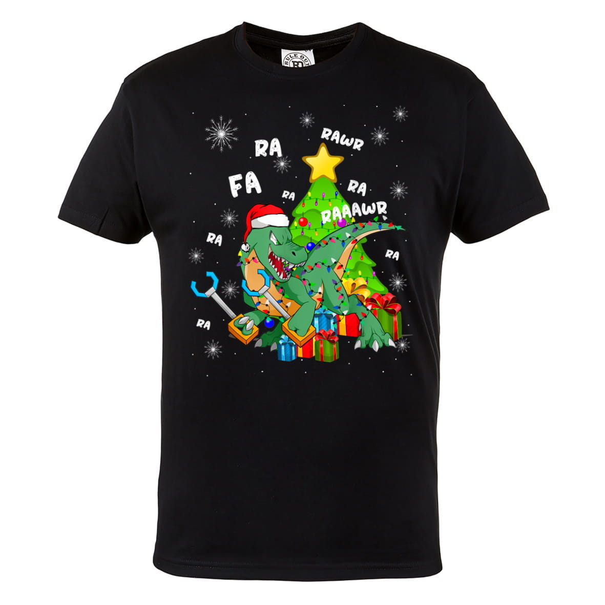 MĘSKA KOSZULKA ŚWIĄTECZNA Z NADRUKIEM DINOZAUR POD CHOINKĄ FA RA RA RAWR