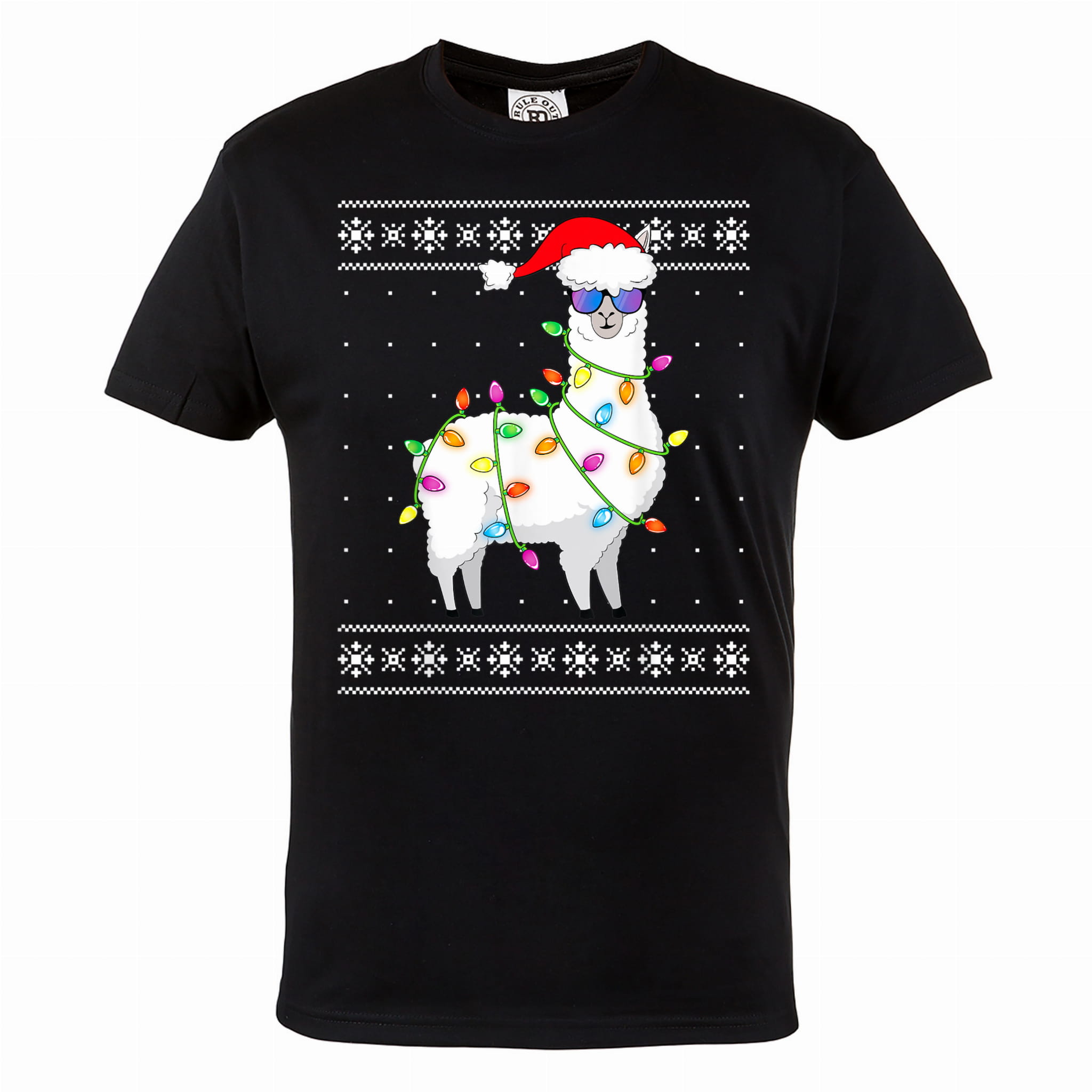MĘSKA KOSZULKA ŚWIĄTECZNA Z NADRUKIEM LAMA ALPAKA Z LAMPKAMI