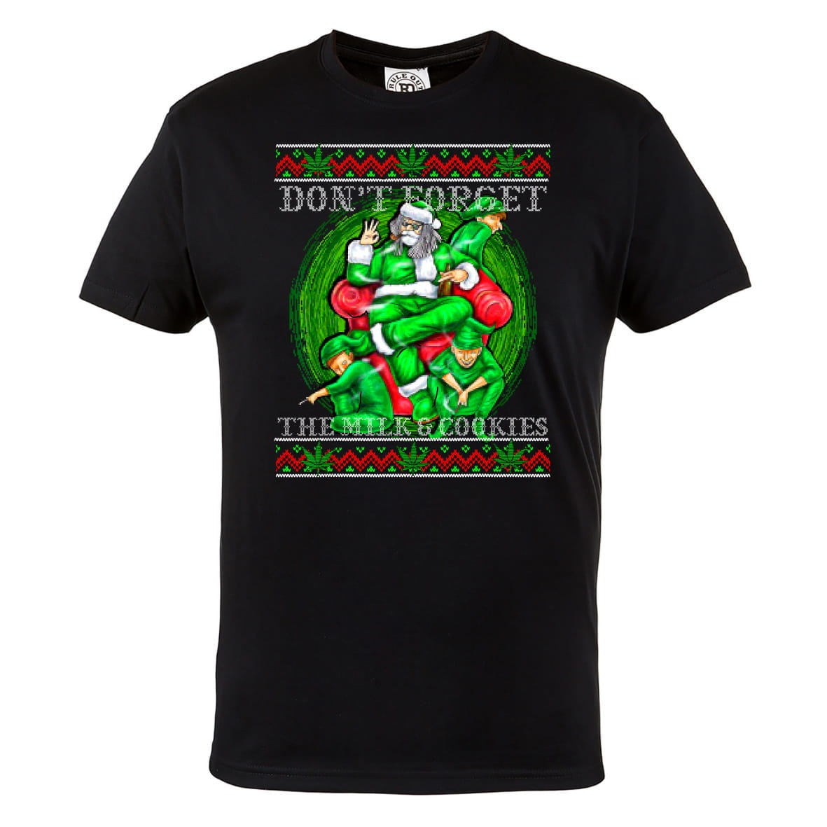 MĘSKA KOSZULKA ŚWIĄTECZNA Z NADRUKIEM ŚWIĘTY MIKOŁAJ Z ELFAMI DON'T FORGET THE MILK AND COOKIES