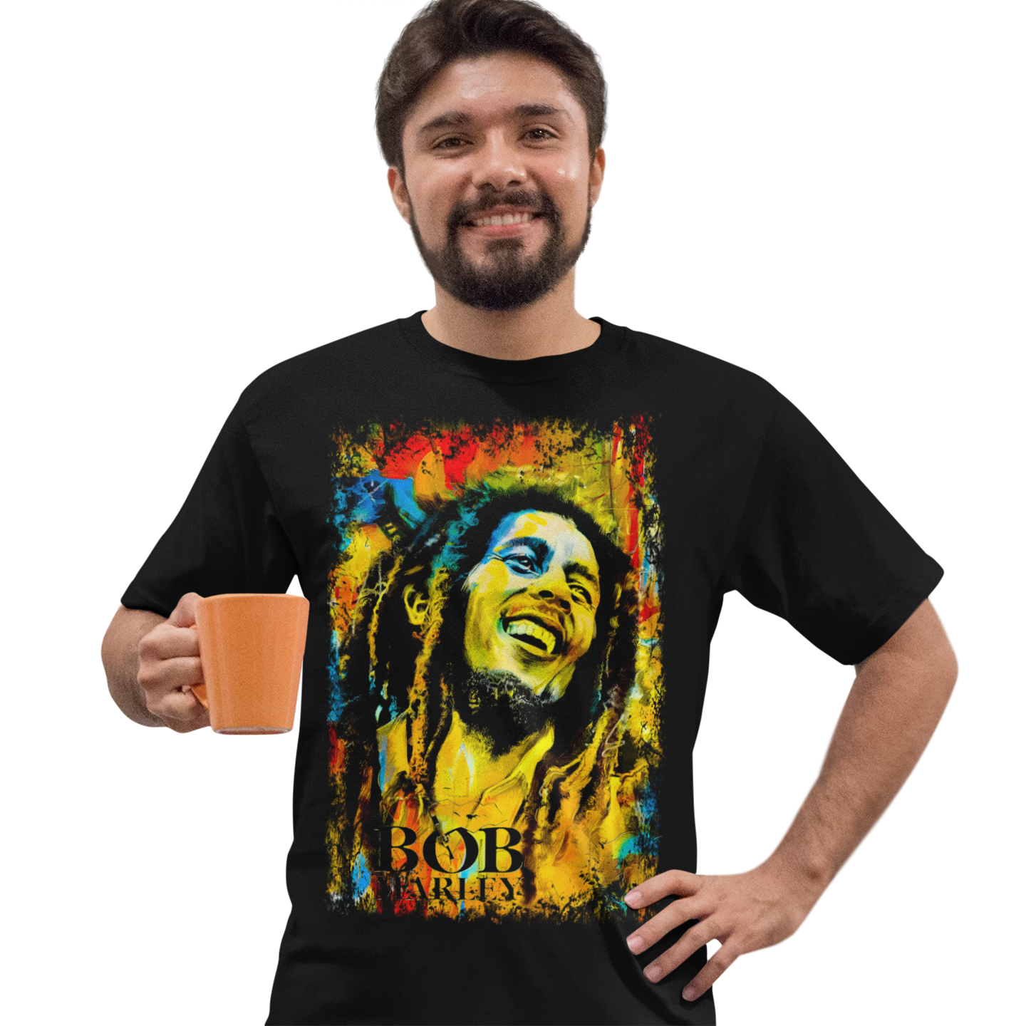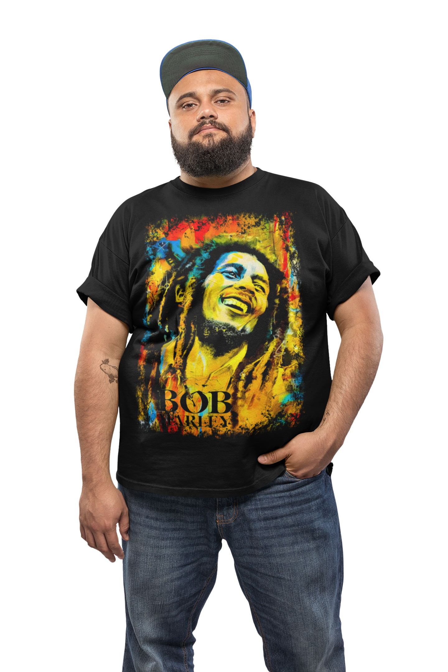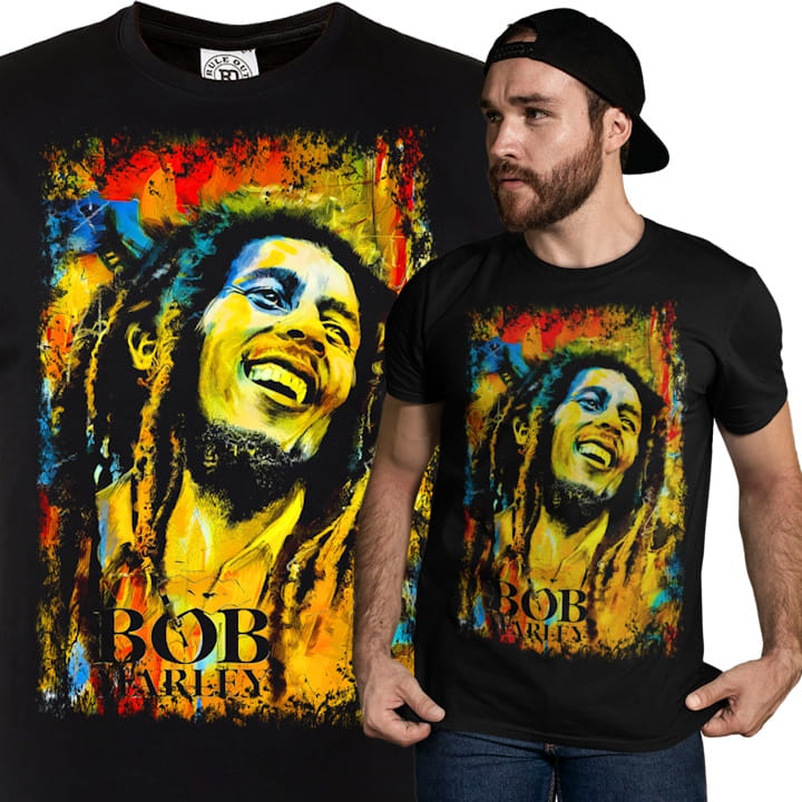 Unikatowa koszulka bawełniana z oryginalnym nadrukiem Boba Marleya. Idealny wybór dla miłośników reggae i legendarnego artysty.