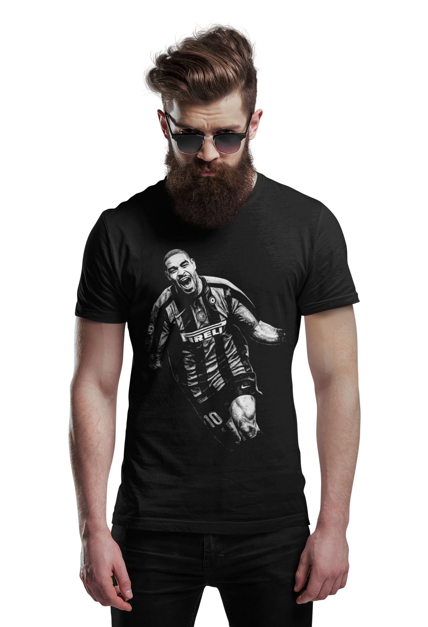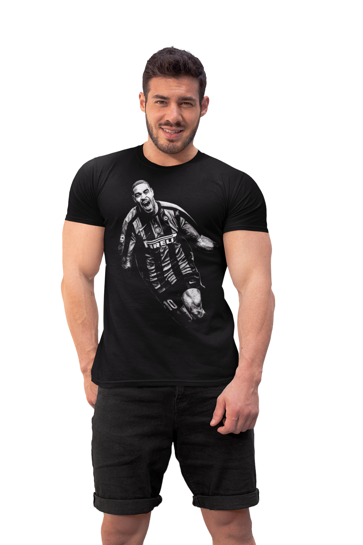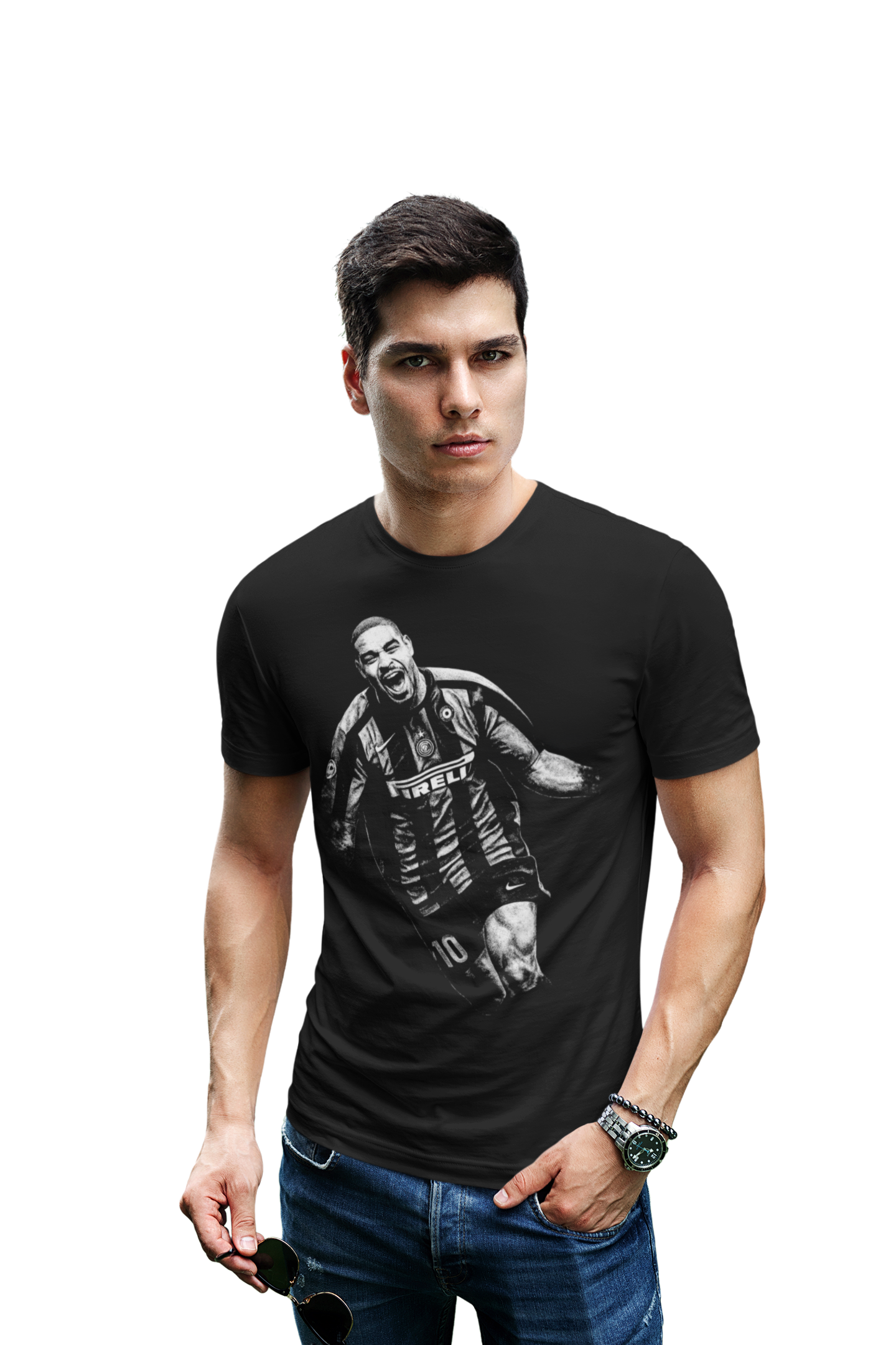 Ta wyjątkowa koszulka męska z wizerunkiem Adriano to hołd dla jednego z najbardziej dominujących napastników początku XXI wieku. Grafika przedstawia Adriano w barwach Interu Mediolan w chwili czystej radości po zdobyciu bramki — emocje, siła i niepowstrzymana energia.