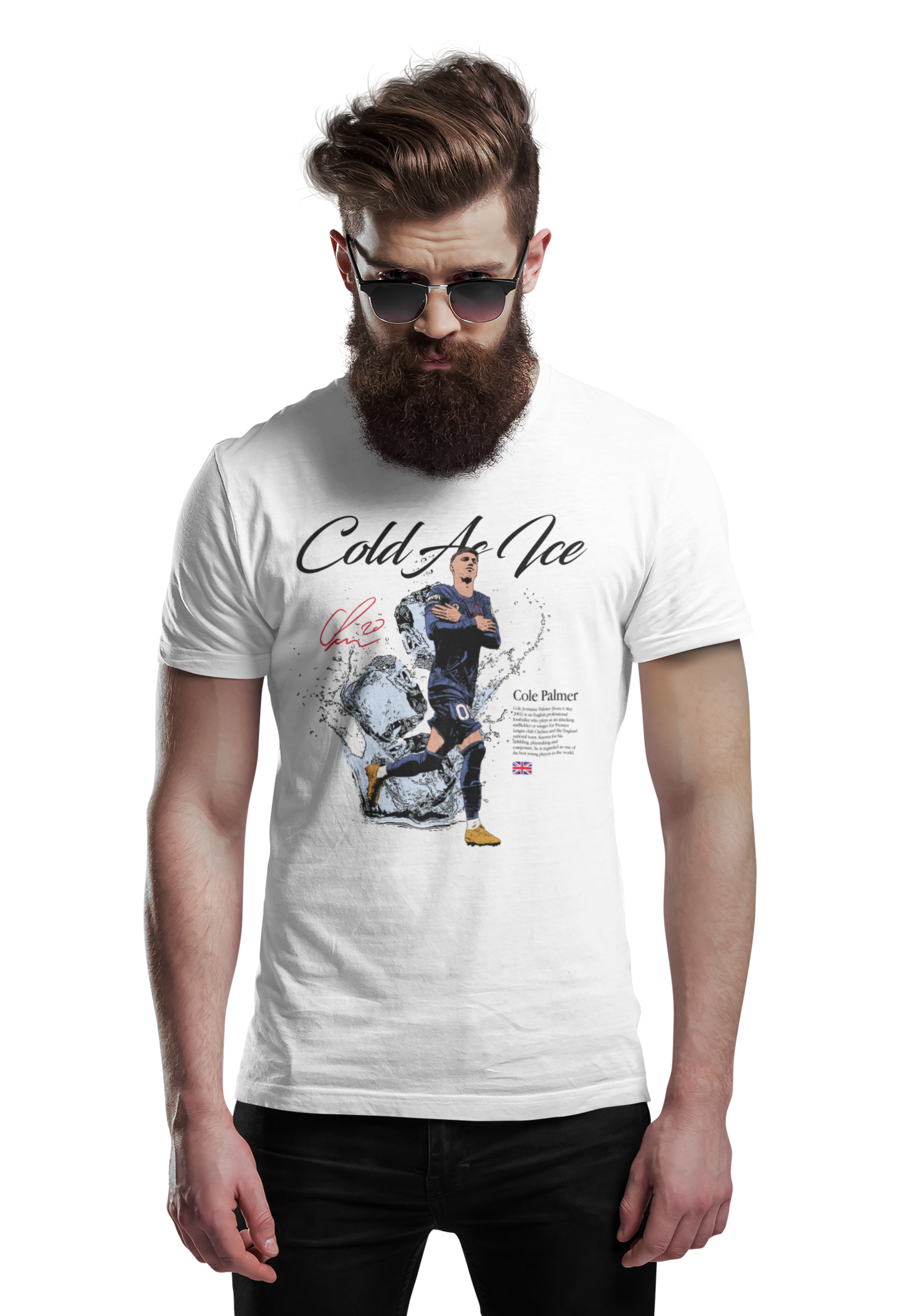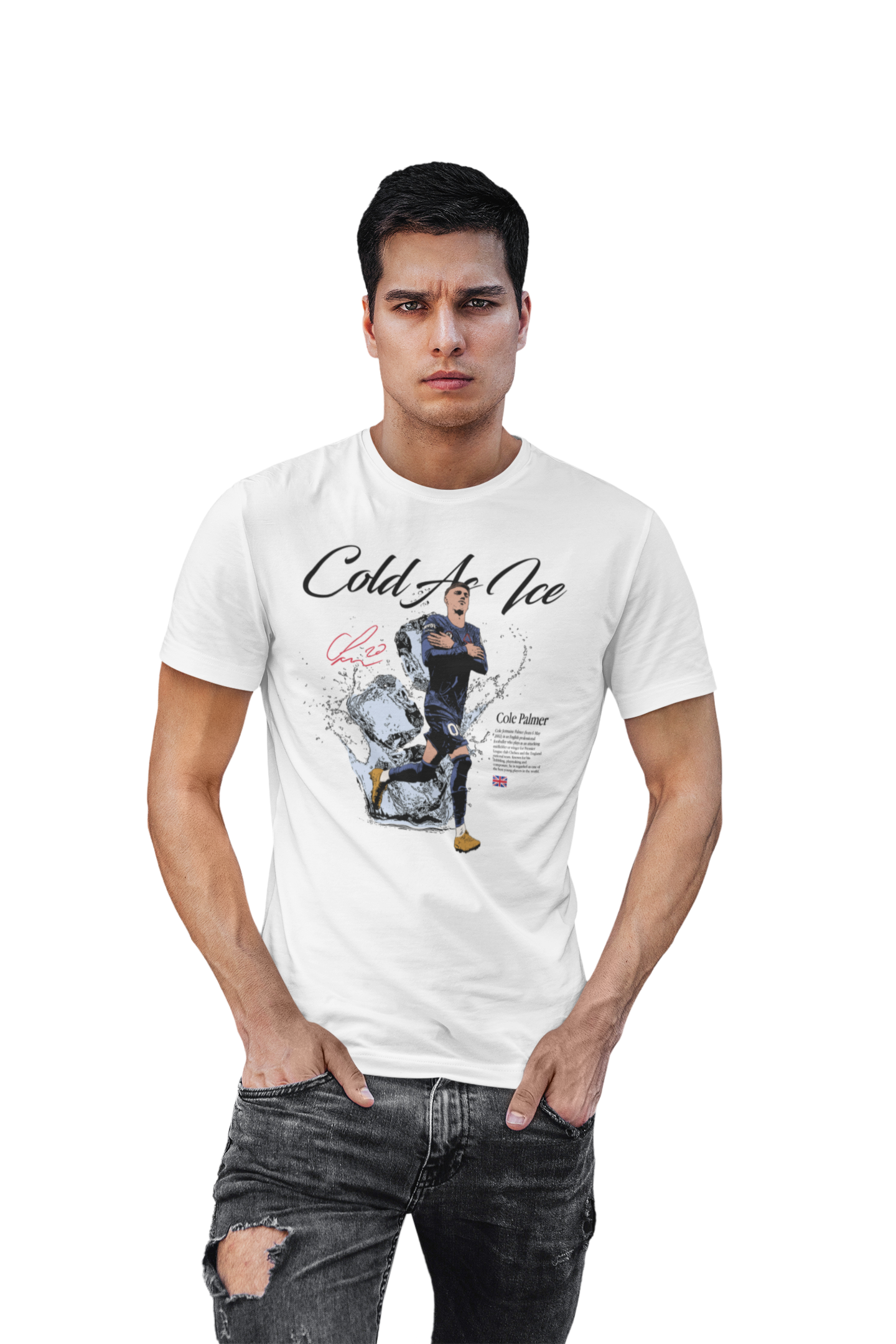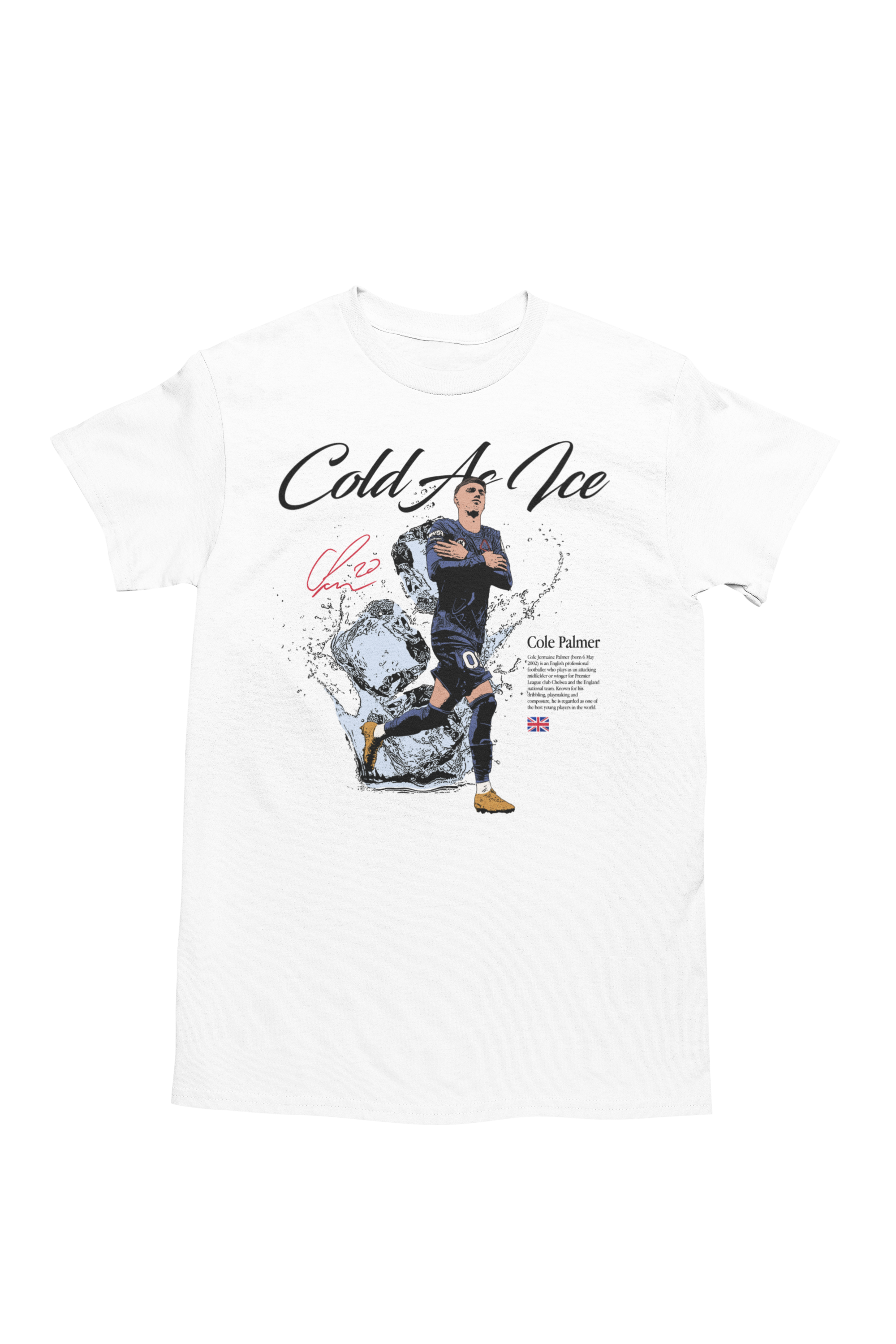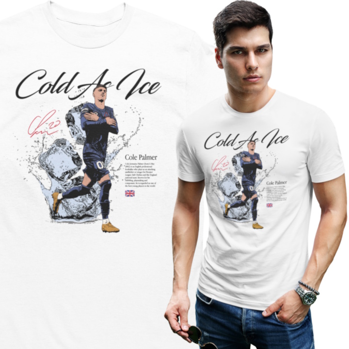 Artystyczny nadruk z hasłem „Cold As Ice” doskonale oddaje charakter Palmera – spokój, koncentrację i bezbłędne wykończenie akcji w kluczowych momentach. Dynamiczna grafika z lodowym motywem sprawia, że koszulka przyciąga wzrok i wyróżnia się na tle innych koszulek piłkarskich.