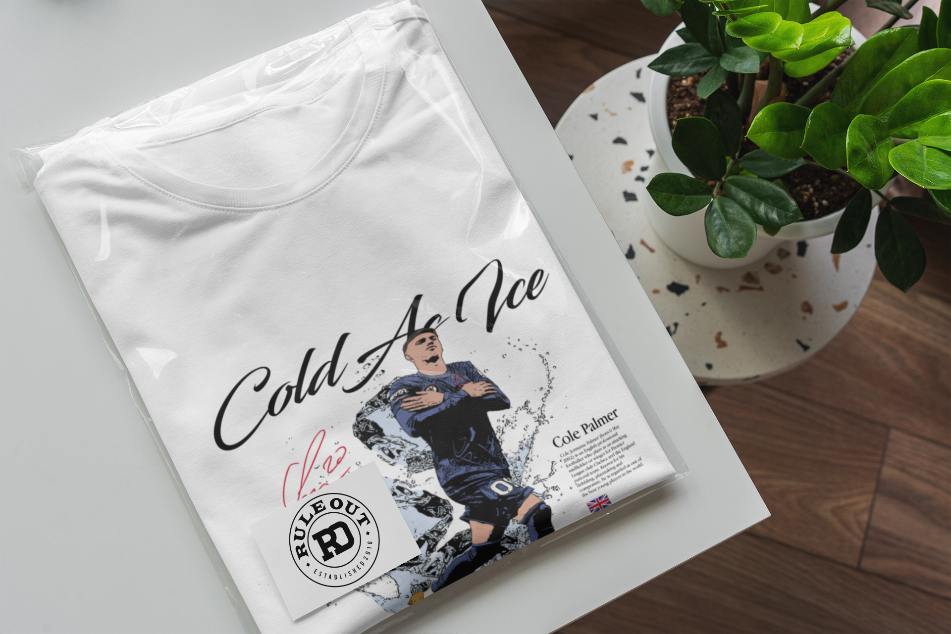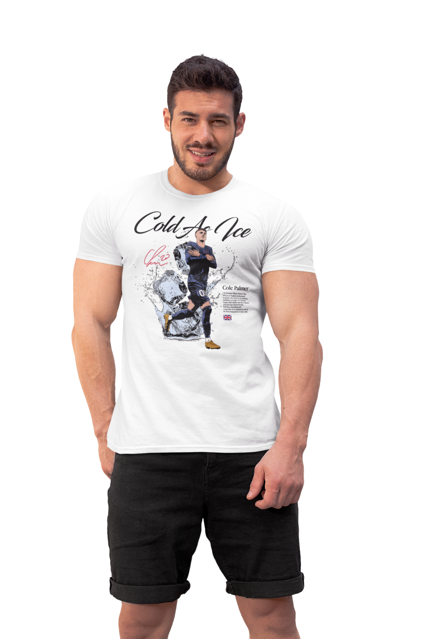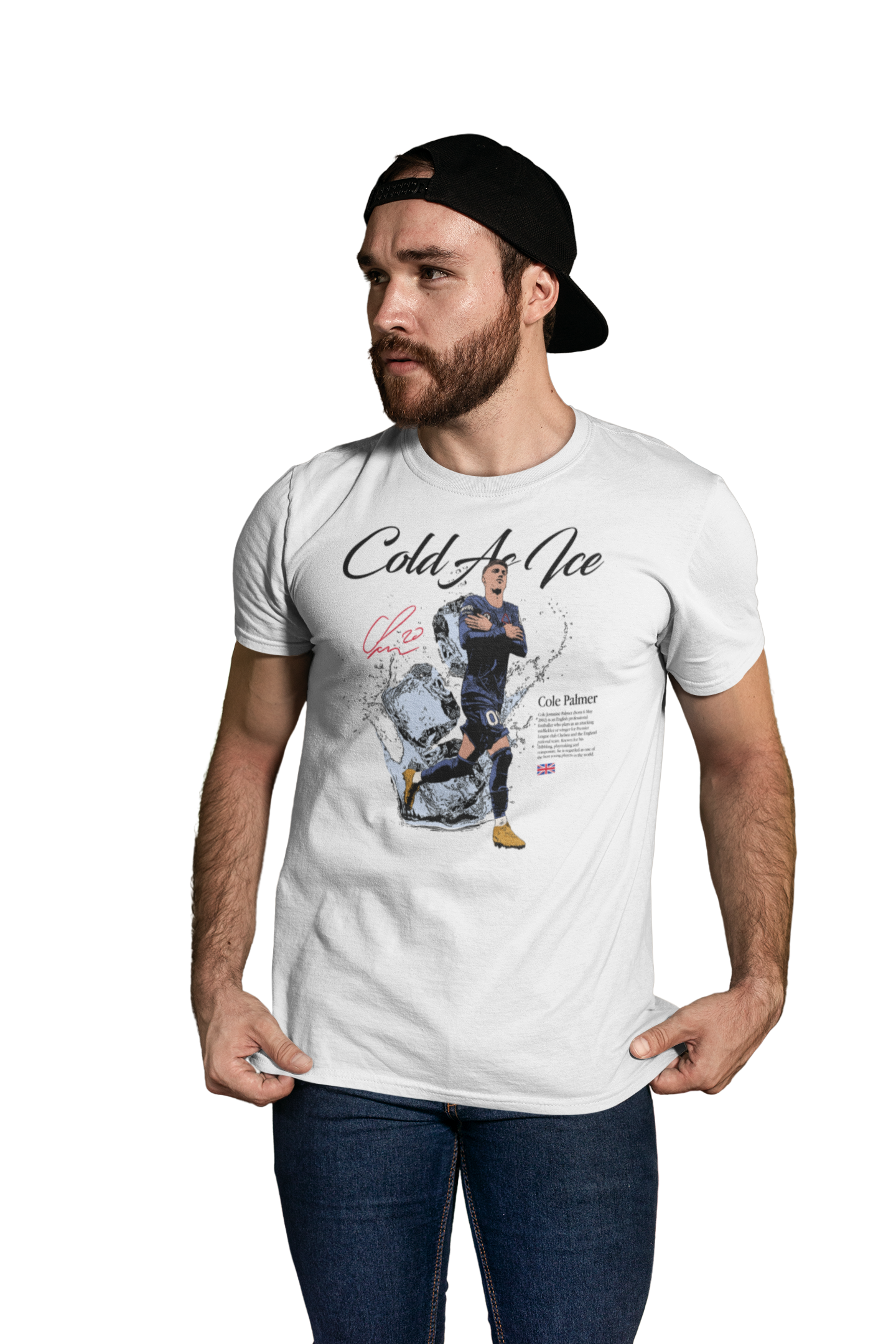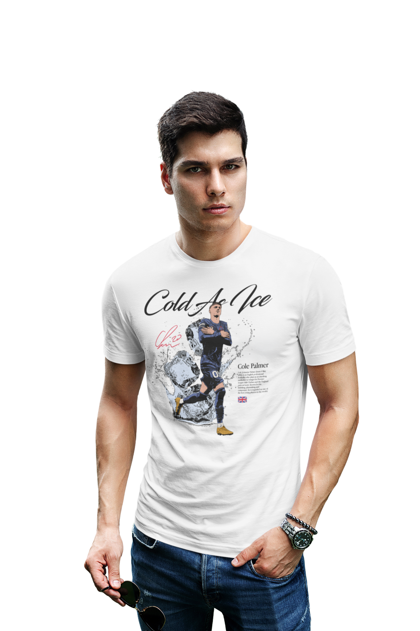 Artystyczny nadruk z hasłem „Cold As Ice” doskonale oddaje charakter Palmera – spokój, koncentrację i bezbłędne wykończenie akcji w kluczowych momentach. Dynamiczna grafika z lodowym motywem sprawia, że koszulka przyciąga wzrok i wyróżnia się na tle innych koszulek piłkarskich.