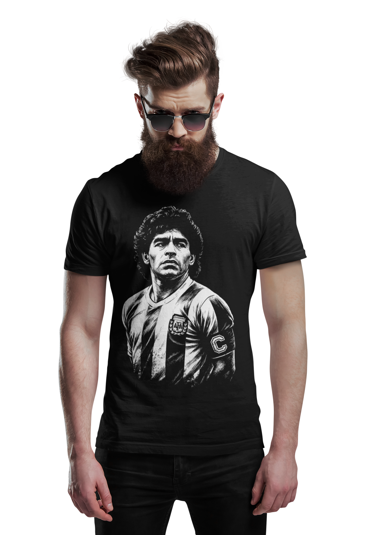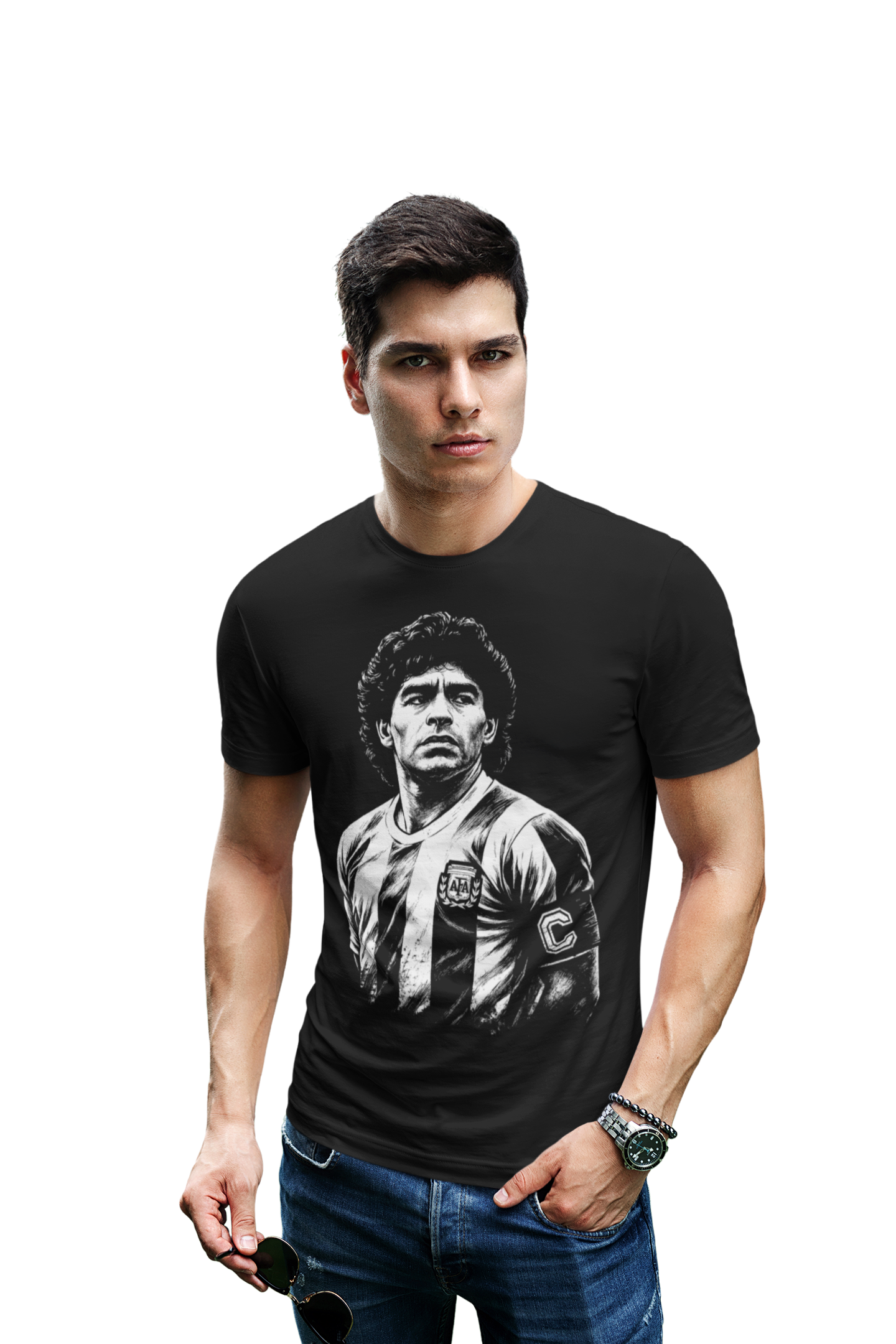 Ta wyjątkowa koszulka męska z wizerunkiem Diego Maradony to obowiązkowa pozycja dla każdego fana światowego futbolu. Jedna z największych ikon w historii piłki nożnej, kapitan, lider i symbol czystego talentu – teraz w formie stylowego, kolekcjonerskiego t-shirtu.