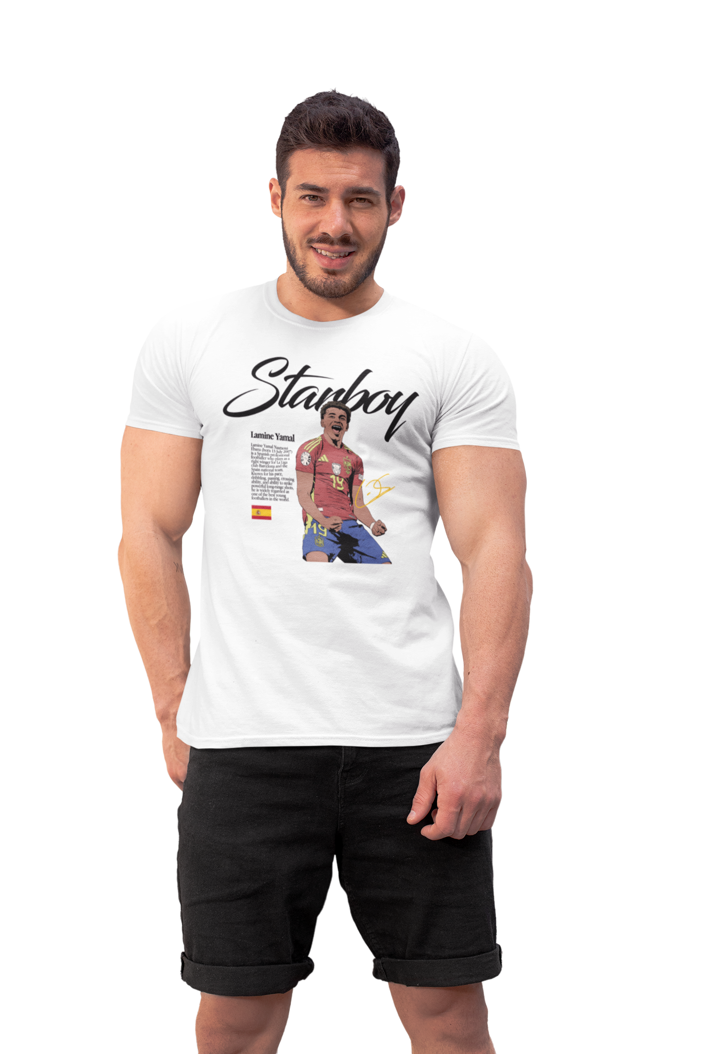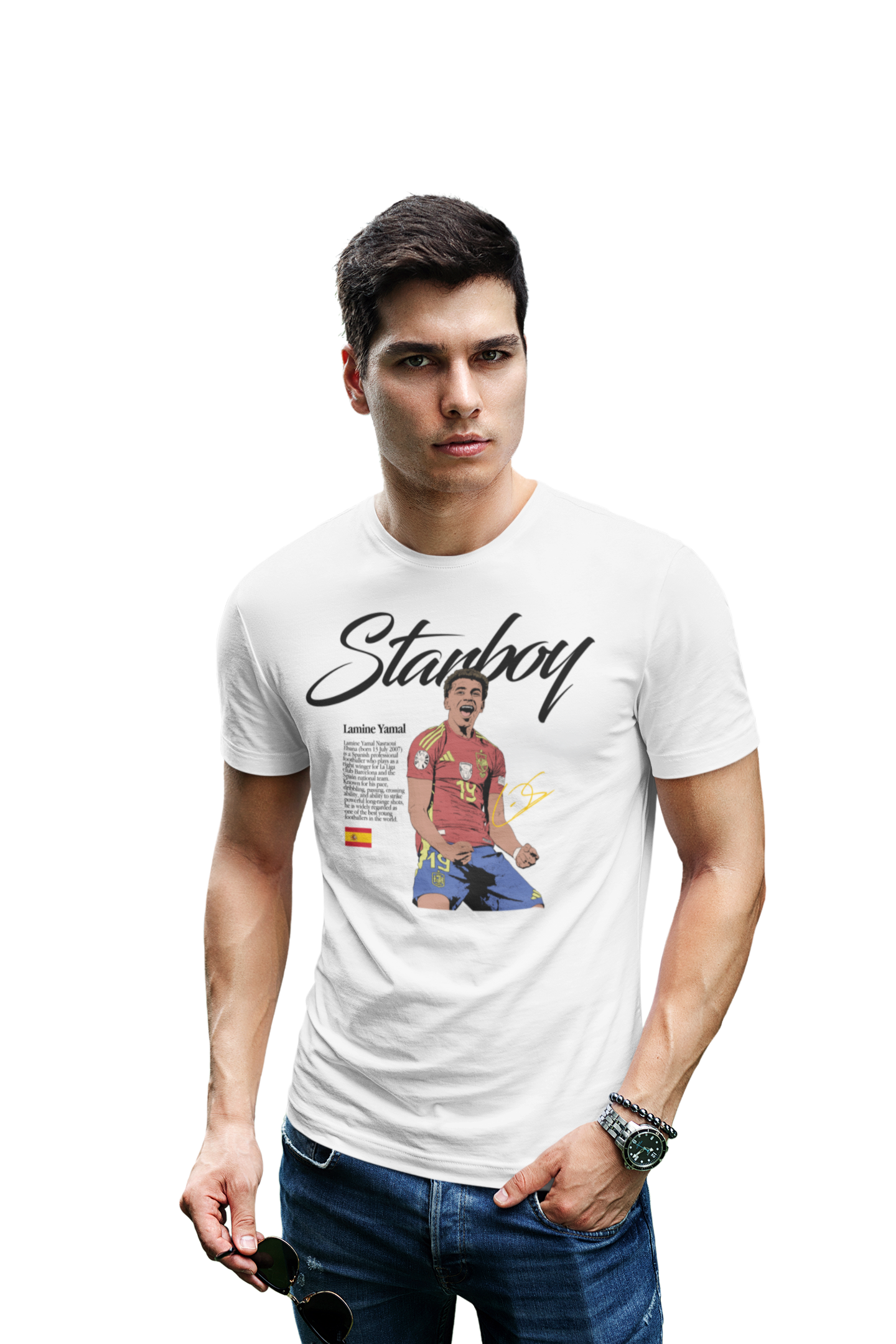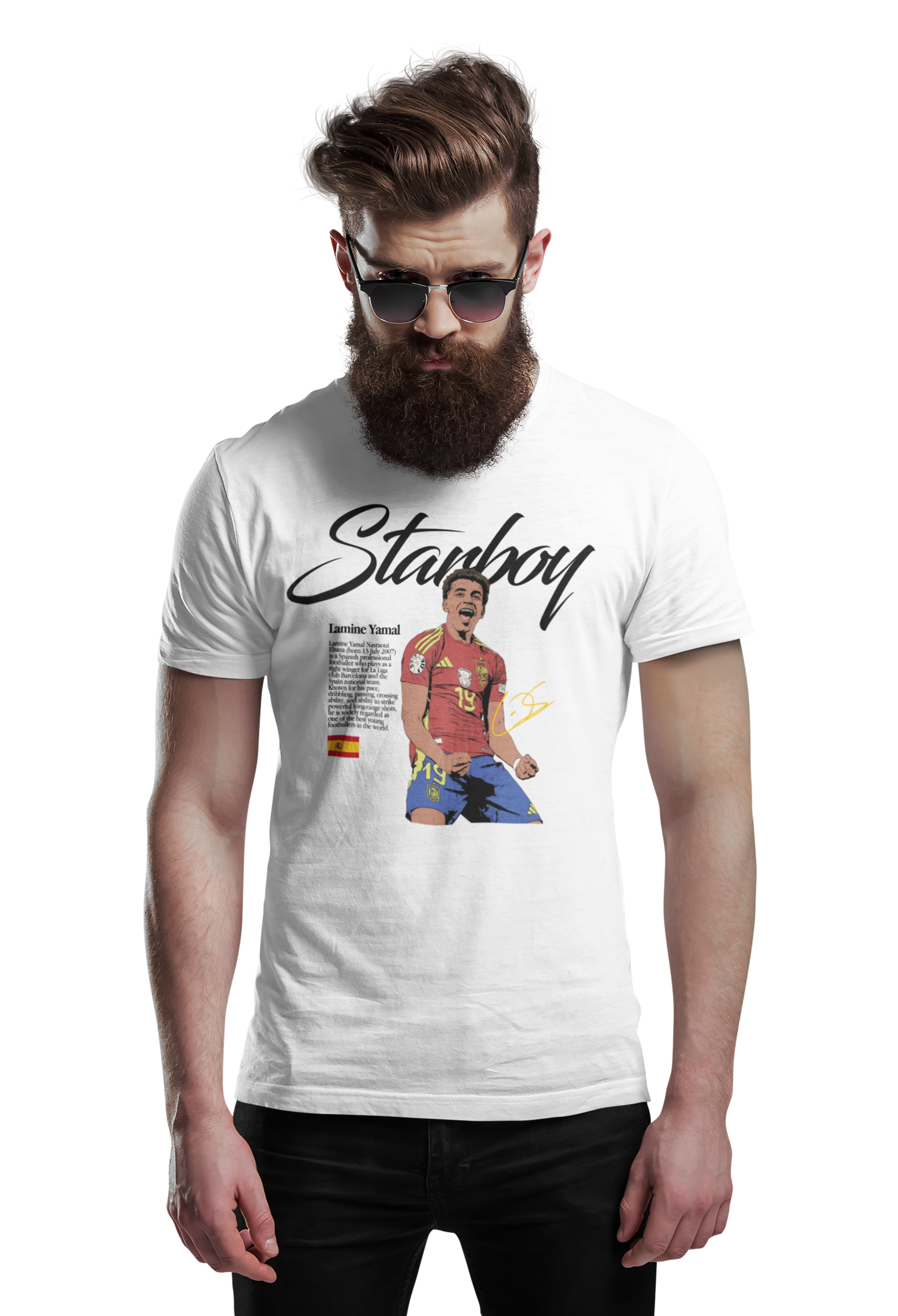 Ta wyjątkowa koszulka męska z wizerunkiem Lamine Yamala to absolutny must-have dla każdego fana nowej generacji futbolu. Jeden z najbardziej utalentowanych młodych piłkarzy na świecie, symbol świeżości, odwagi i ogromnego potencjału – teraz w formie stylowego, kolekcjonerskiego t-shirtu.