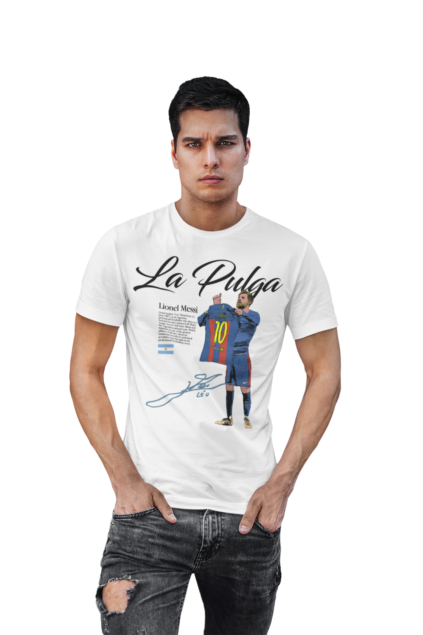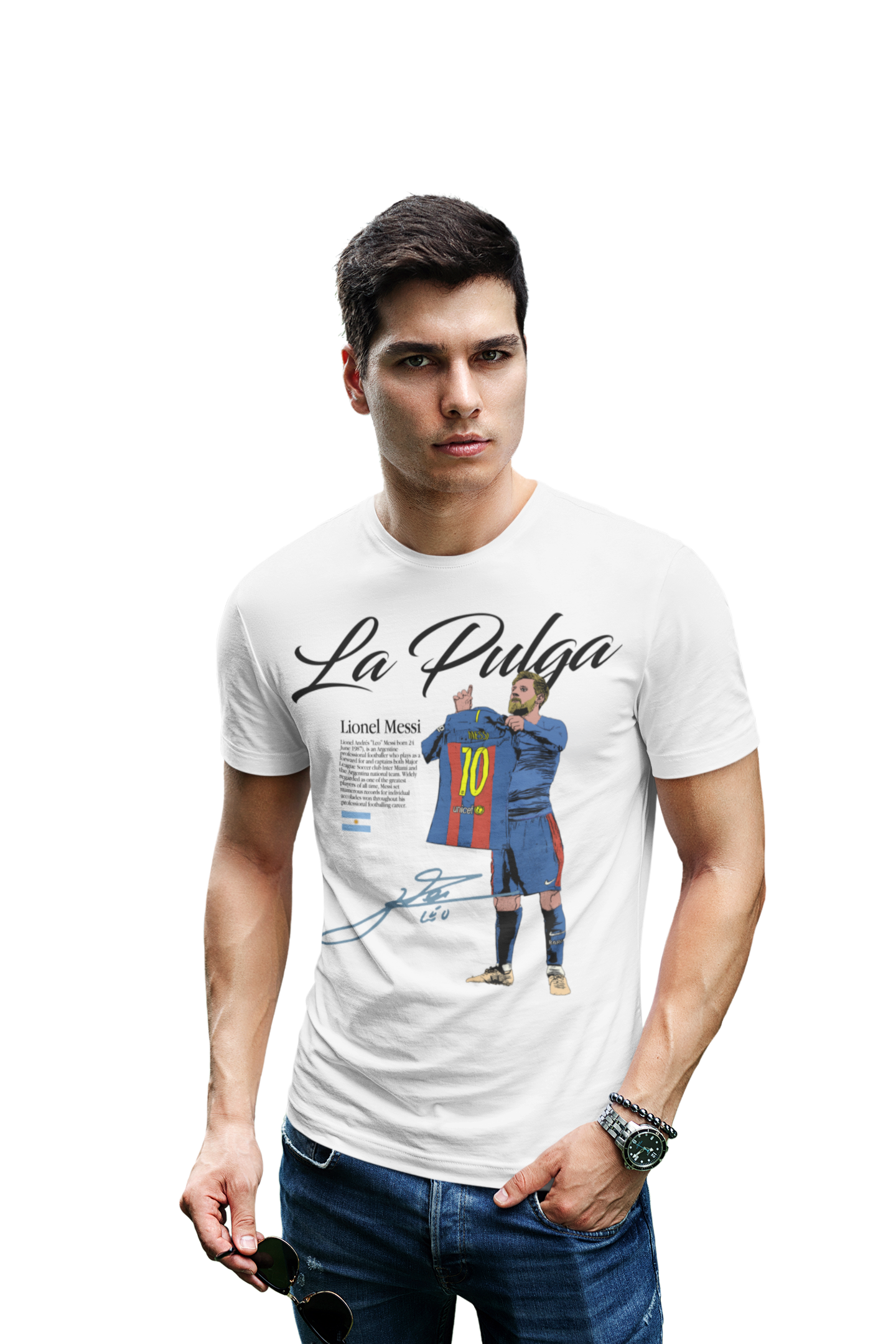 Ta wyjątkowa koszulka męska z wizerunkiem Lionela Messiego to obowiązkowa pozycja dla każdego fana światowego futbolu. Jeden z najwybitniejszych piłkarzy w historii, legenda numeru 10 i symbol piłkarskiej perfekcji – teraz w formie stylowego, kolekcjonerskiego t-shirtu.