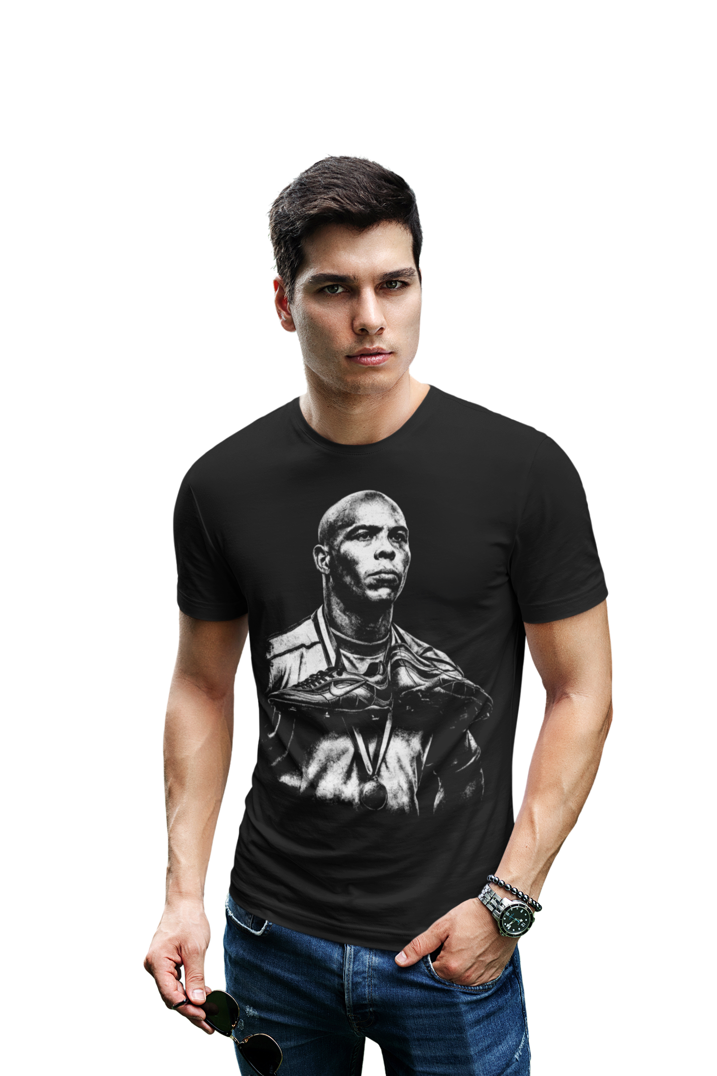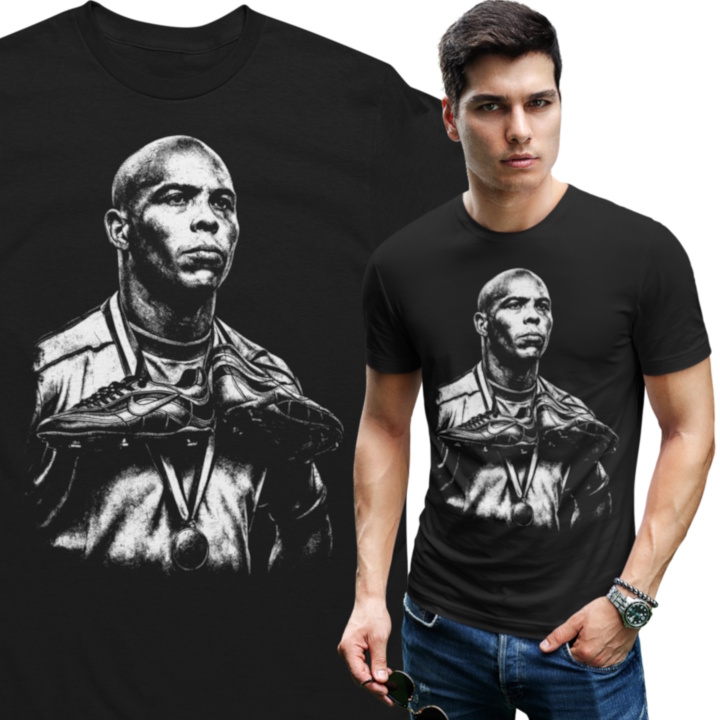 Ta wyjątkowa koszulka męska z wizerunkiem Ronaldo Nazário to obowiązkowa pozycja dla każdego fana światowego futbolu. Jeden z najwybitniejszych napastników w historii piłki nożnej, ikona mundiali i symbol siły, szybkości oraz skuteczności – teraz w formie stylowego, kolekcjonerskiego t-shirtu.