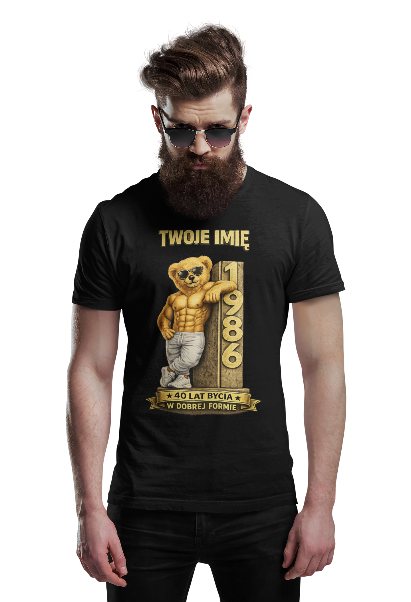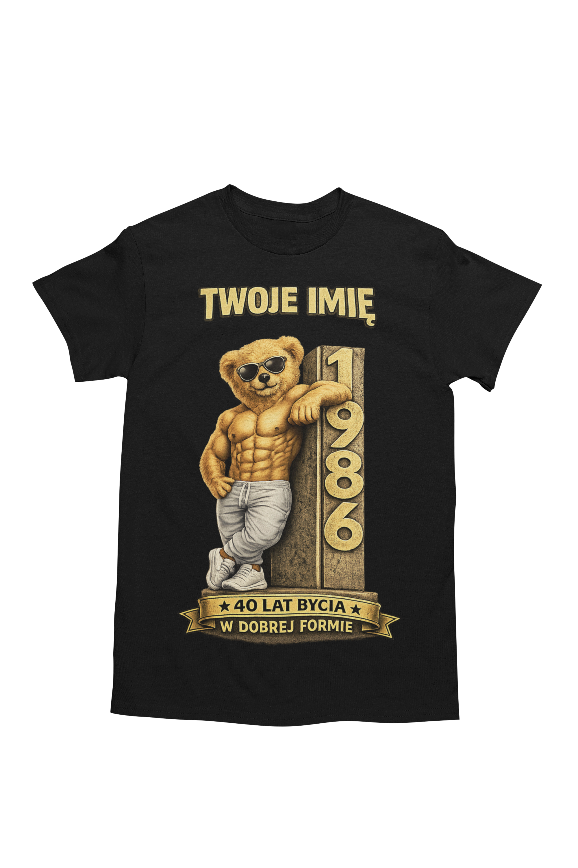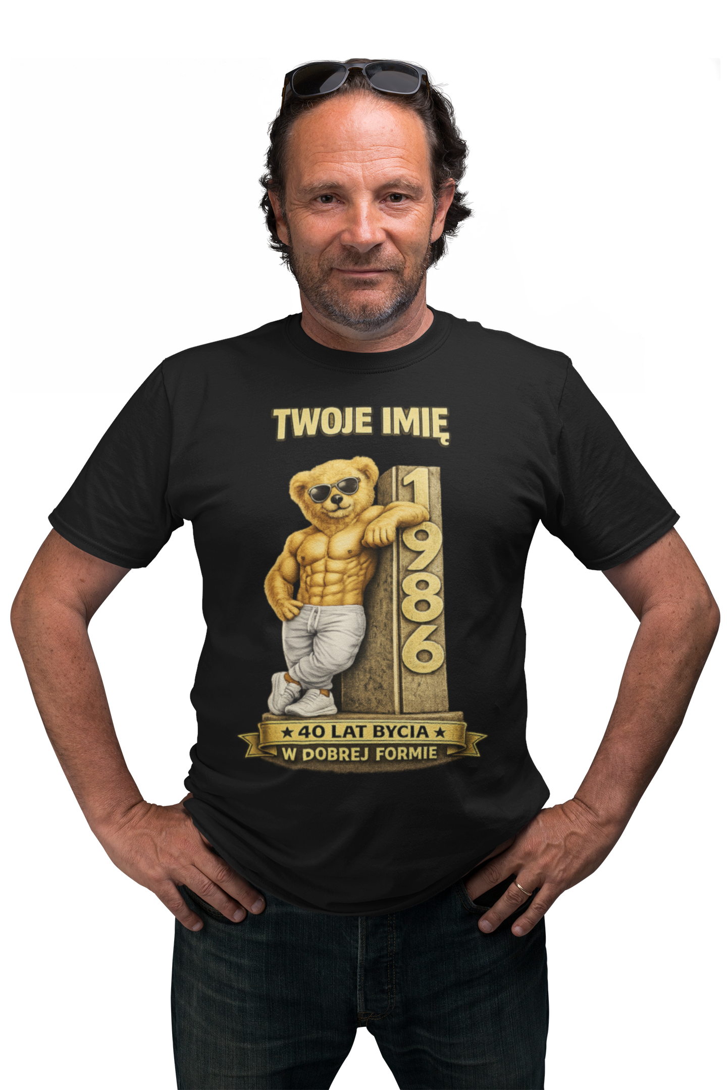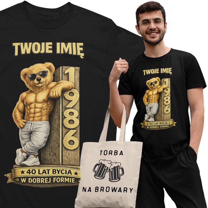 ➡️ Opcjonalnie: zmianę tekstu – jeśli chcesz inny napis zamiast oryginalnego „40 LAT BYCIA W DOBREJ FORMIE”, możesz podać własną wersję!