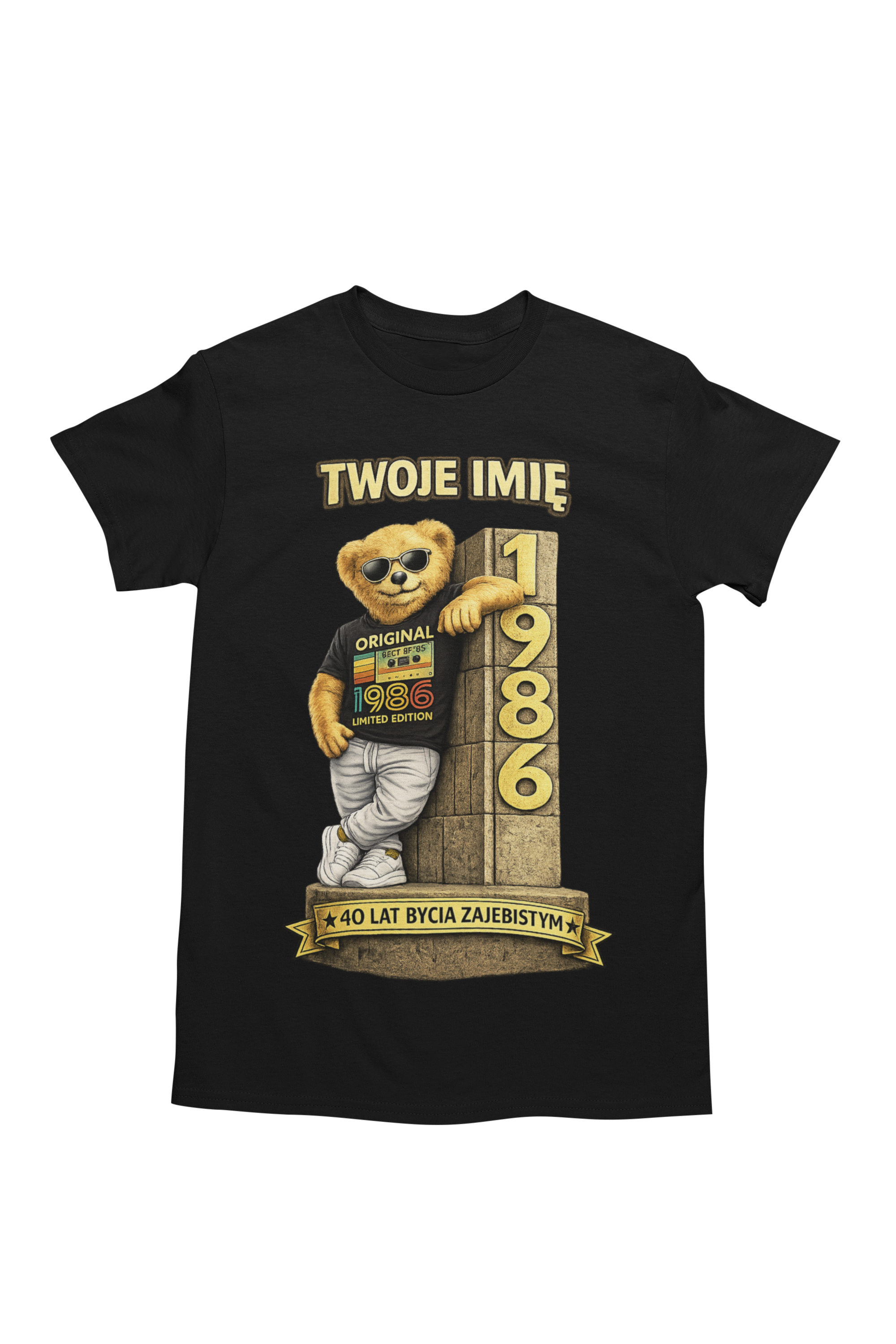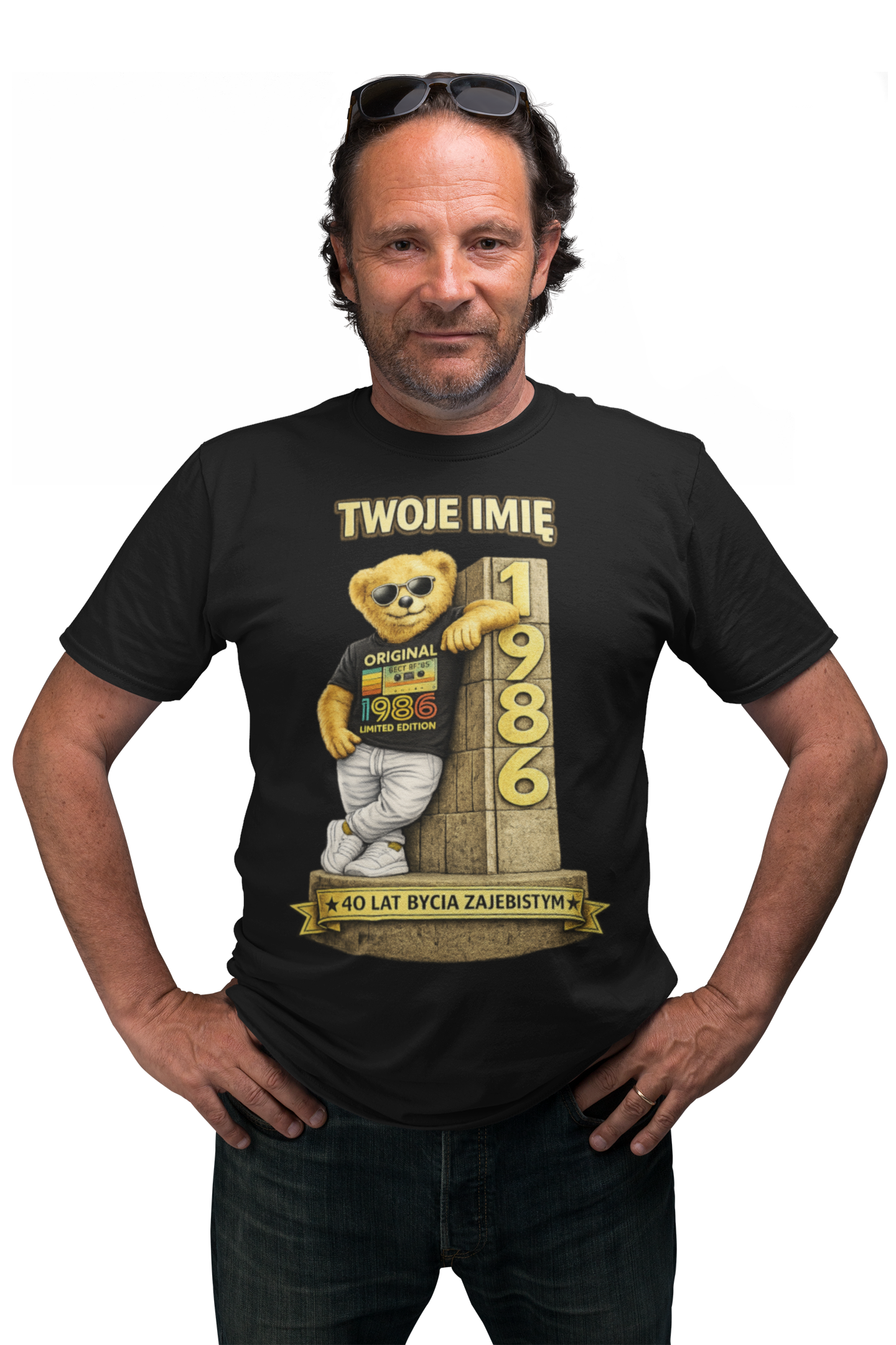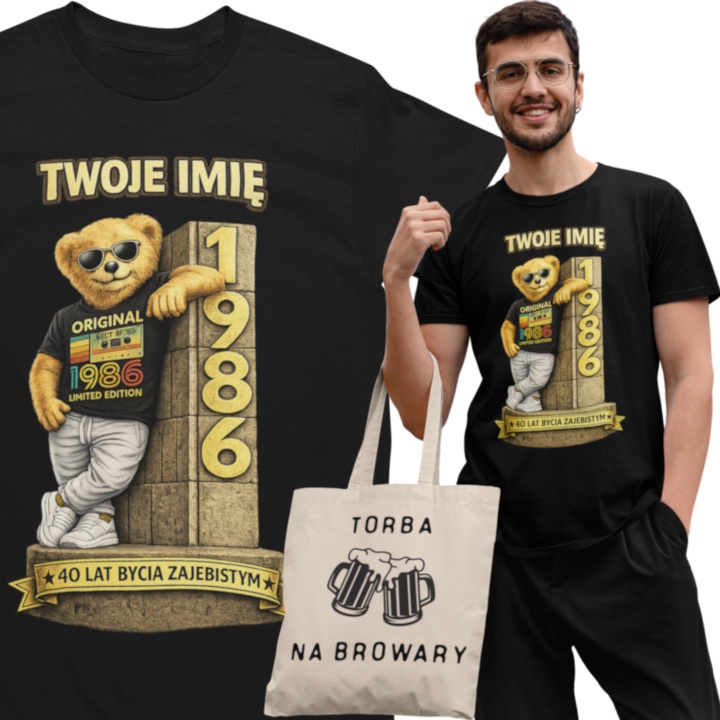 Ta personalizowana koszulka „40 lat bycia zajebistym” to idealny wybór dla mężczyzny, który wkracza w czterdziestkę z dystansem do siebie, pewnością i dobrym humorem. Wyrazista grafika z charakterystycznym motywem „Original 1986 – Limited Edition” oraz możliwością dodania imienia sprawiają, że koszulka staje się wyjątkową pamiątką na okrągłe urodziny.