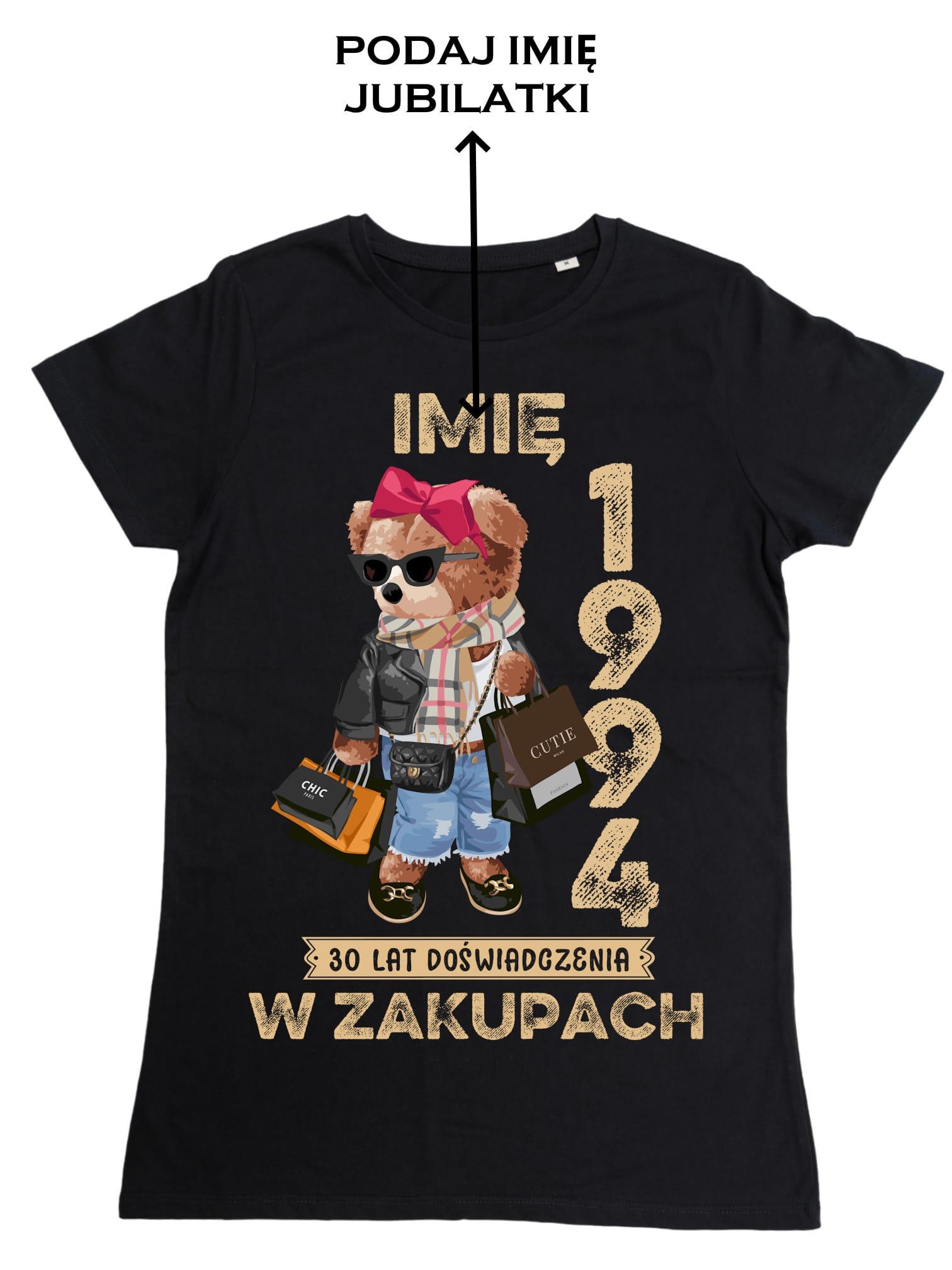 PERSONALIZOWANA DAMSKA KOSZULKA PREZENT NA 30 URODZINY 1994 ZAKUPOHOLICZKA PODAJ IMIĘ TORBA GRATIS