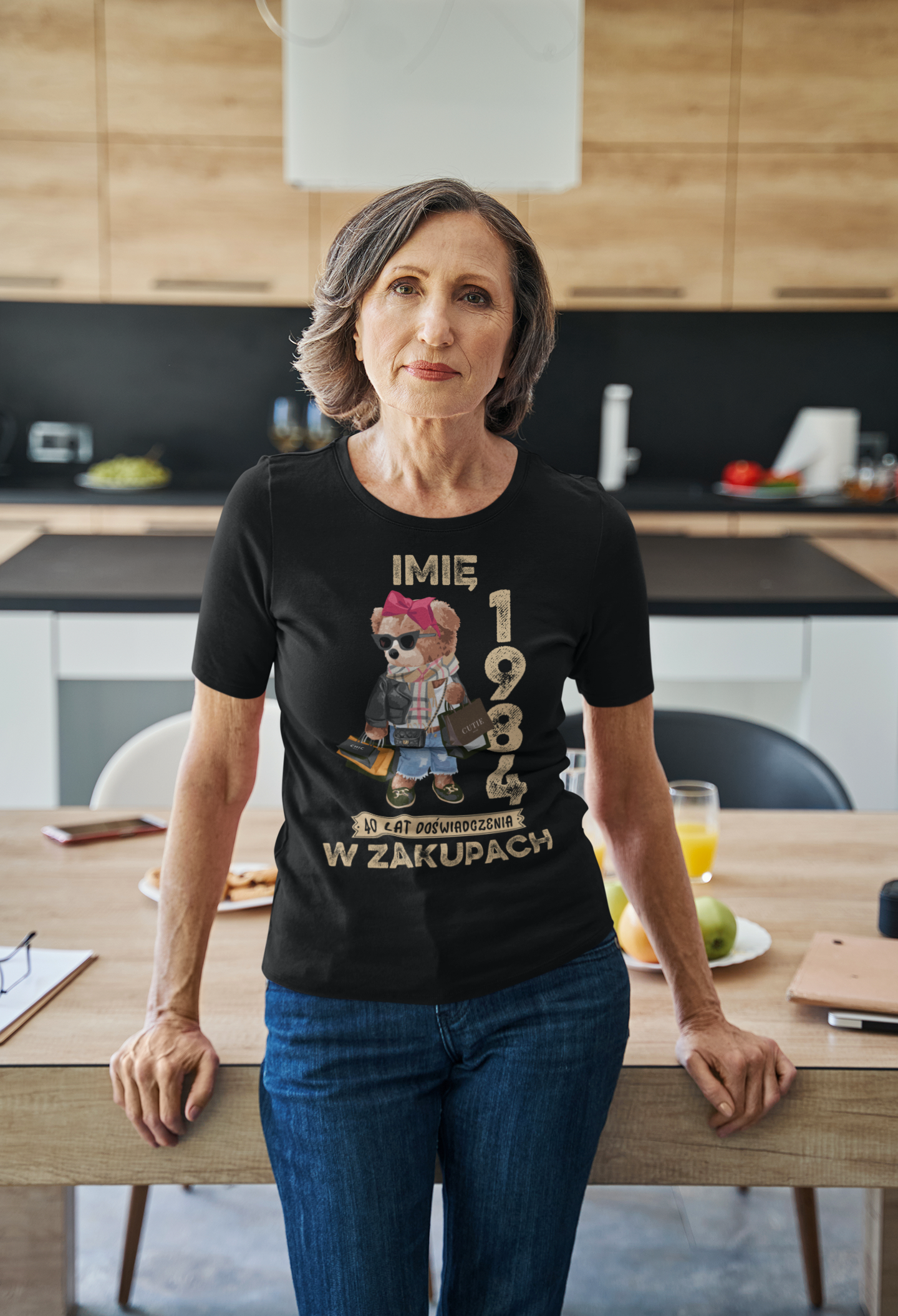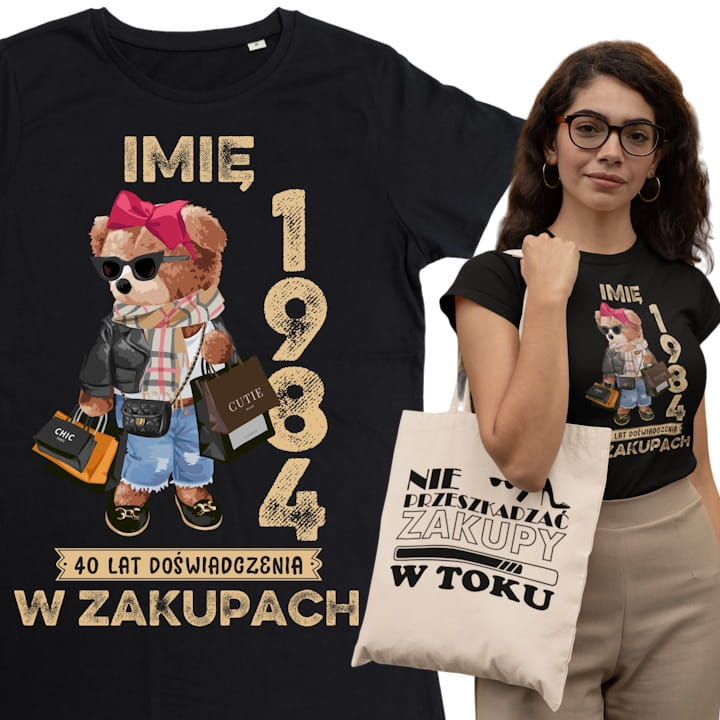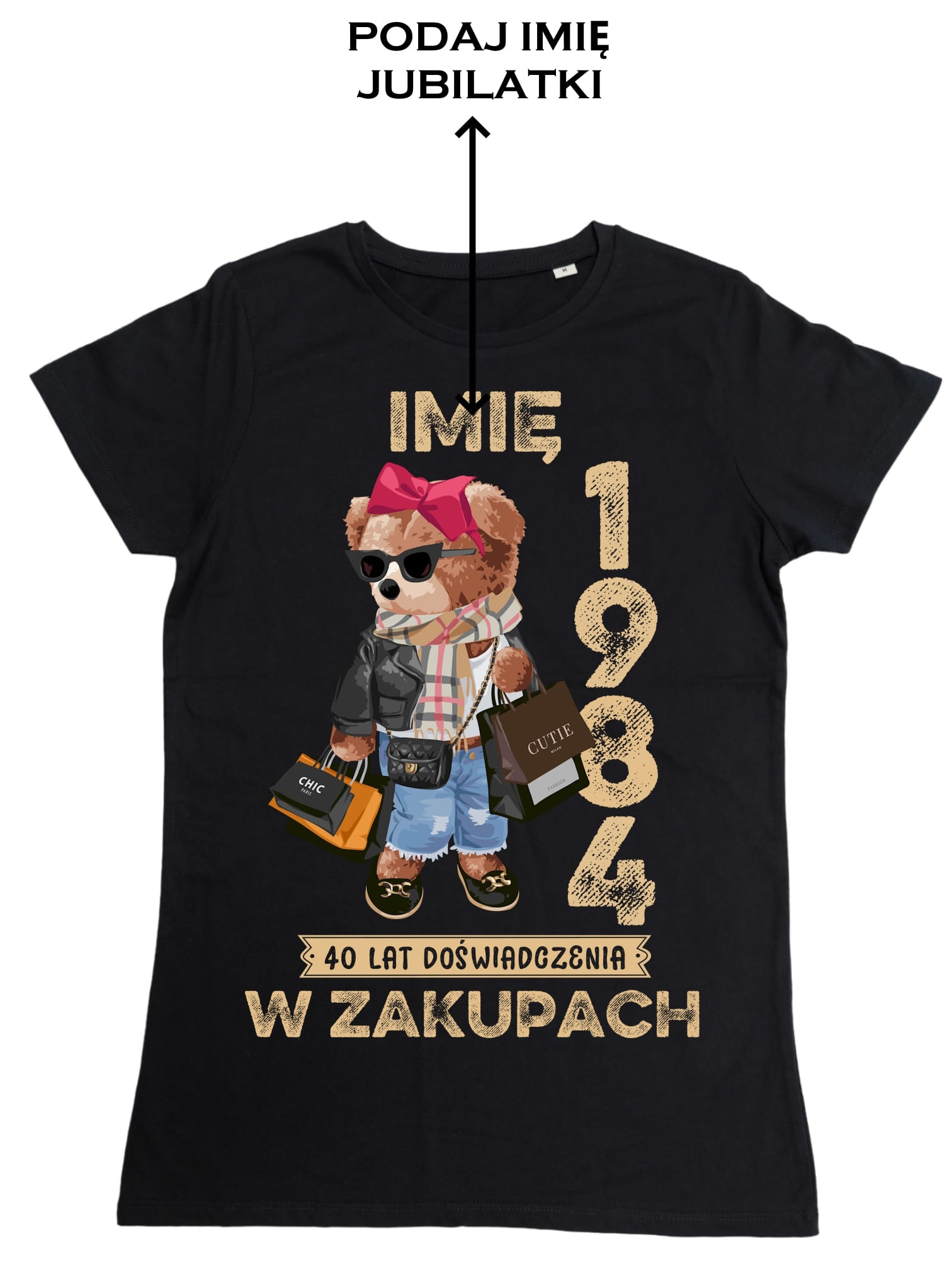 PERSONALIZOWANA DAMSKA KOSZULKA PREZENT NA 40 URODZINY 1984 ZAKUPOHOLICZKA PODAJ IMIĘ TORBA GRATIS