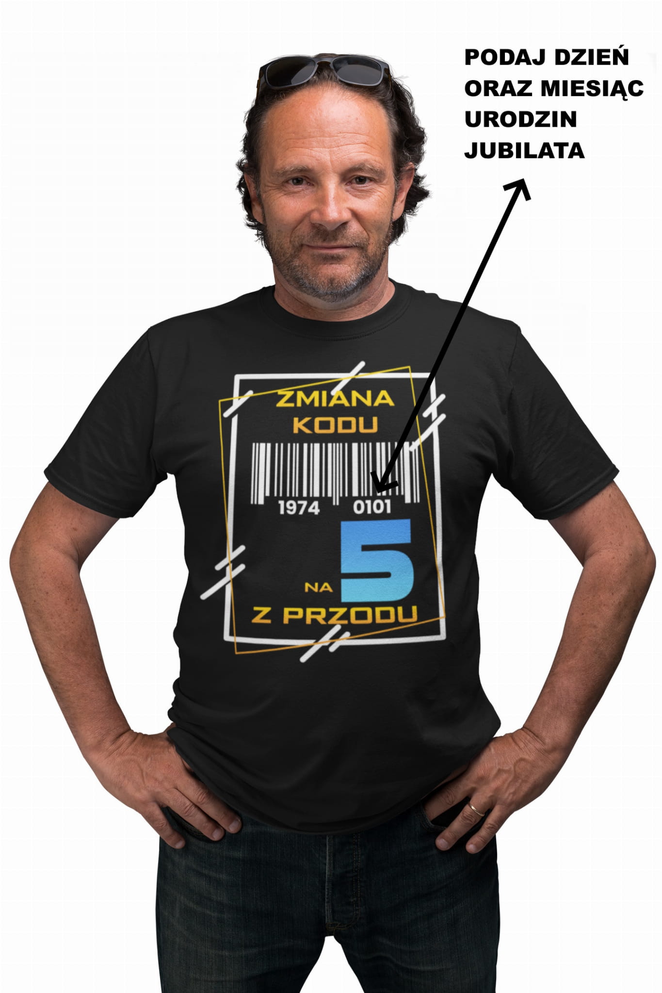 Koszulka z Nadrukiem Kodu kreskowego z datą urodzin jubilata podaną przez Ciebie: