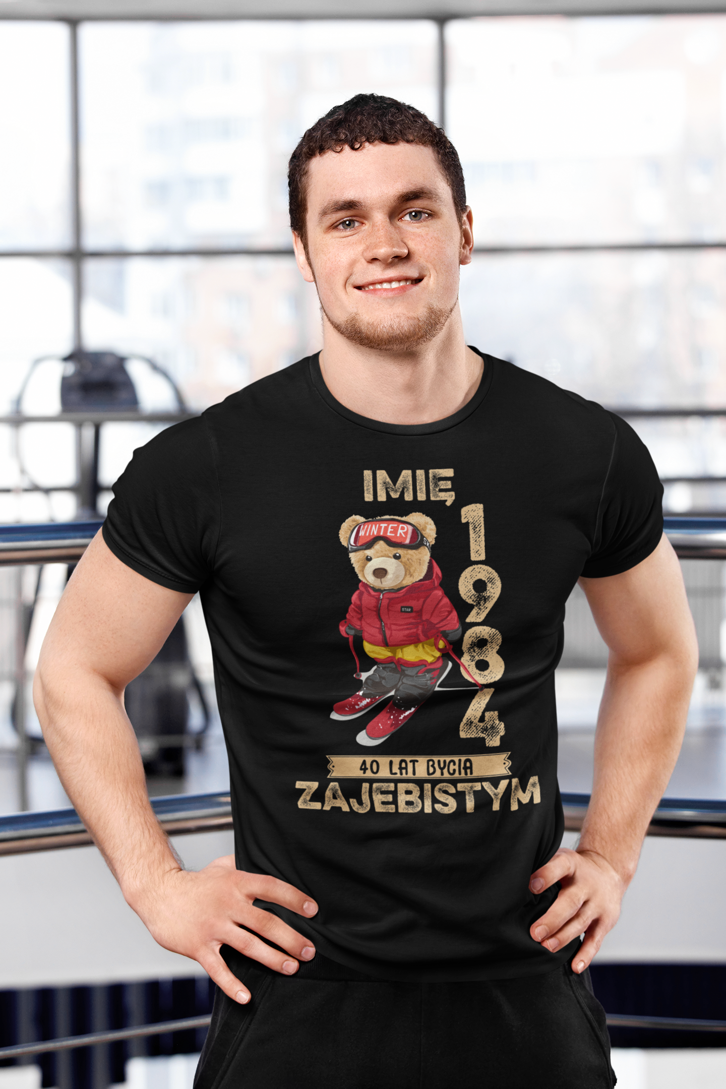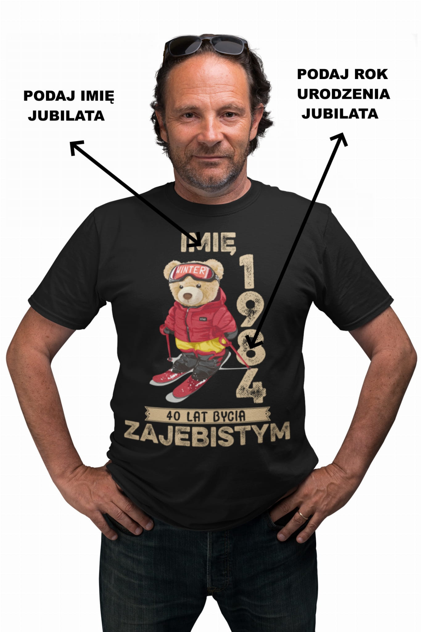 PERSONALIZOWANA KOSZULKA PREZENT NA URODZINY MIŚ NARCIARZ PODAJ IMIĘ I ROK TORBA GRATIS
