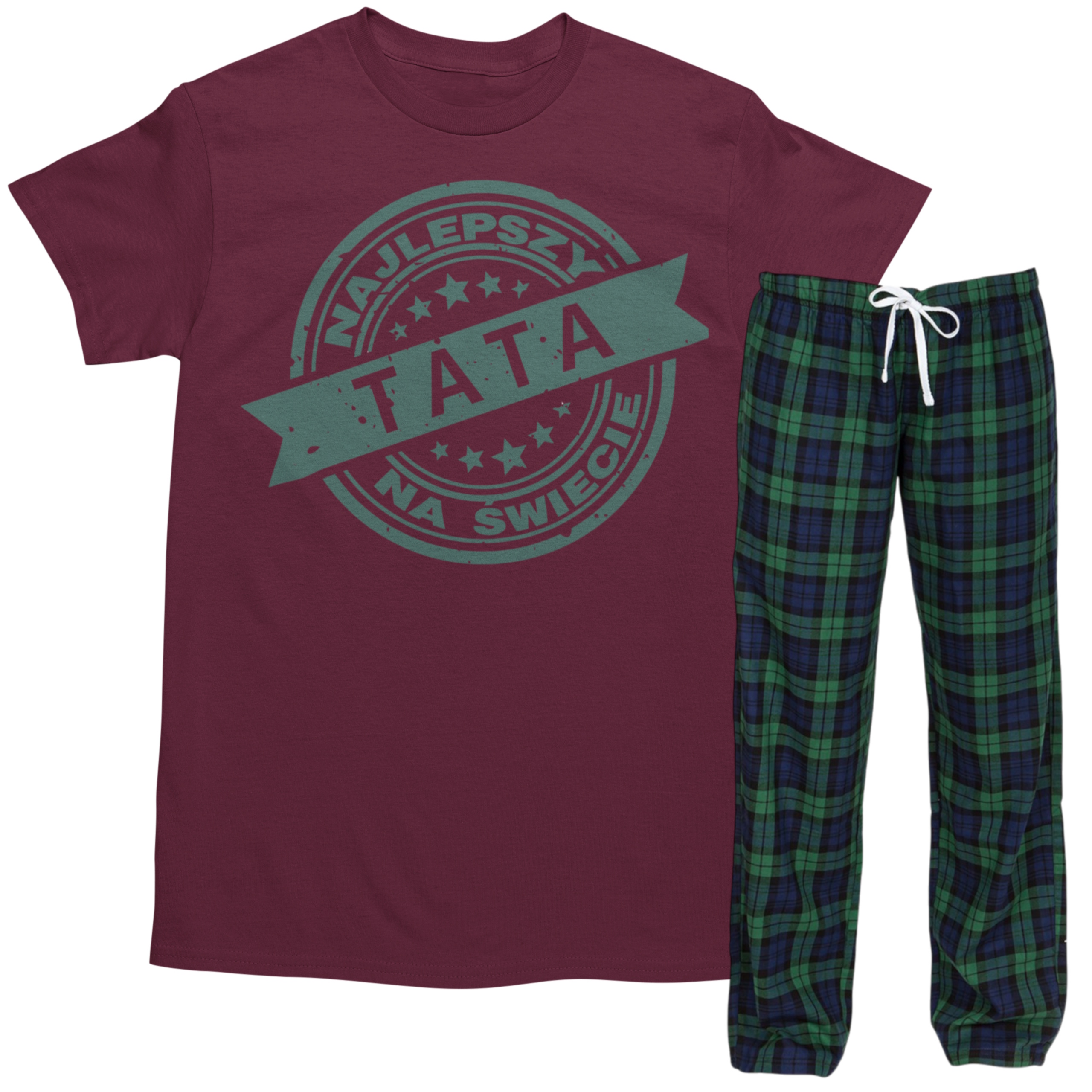 Piżama męska „Najlepszy Tata na świecie” – prezent na Dzień Ojca, koszulka + spodnie w kratę