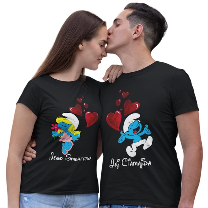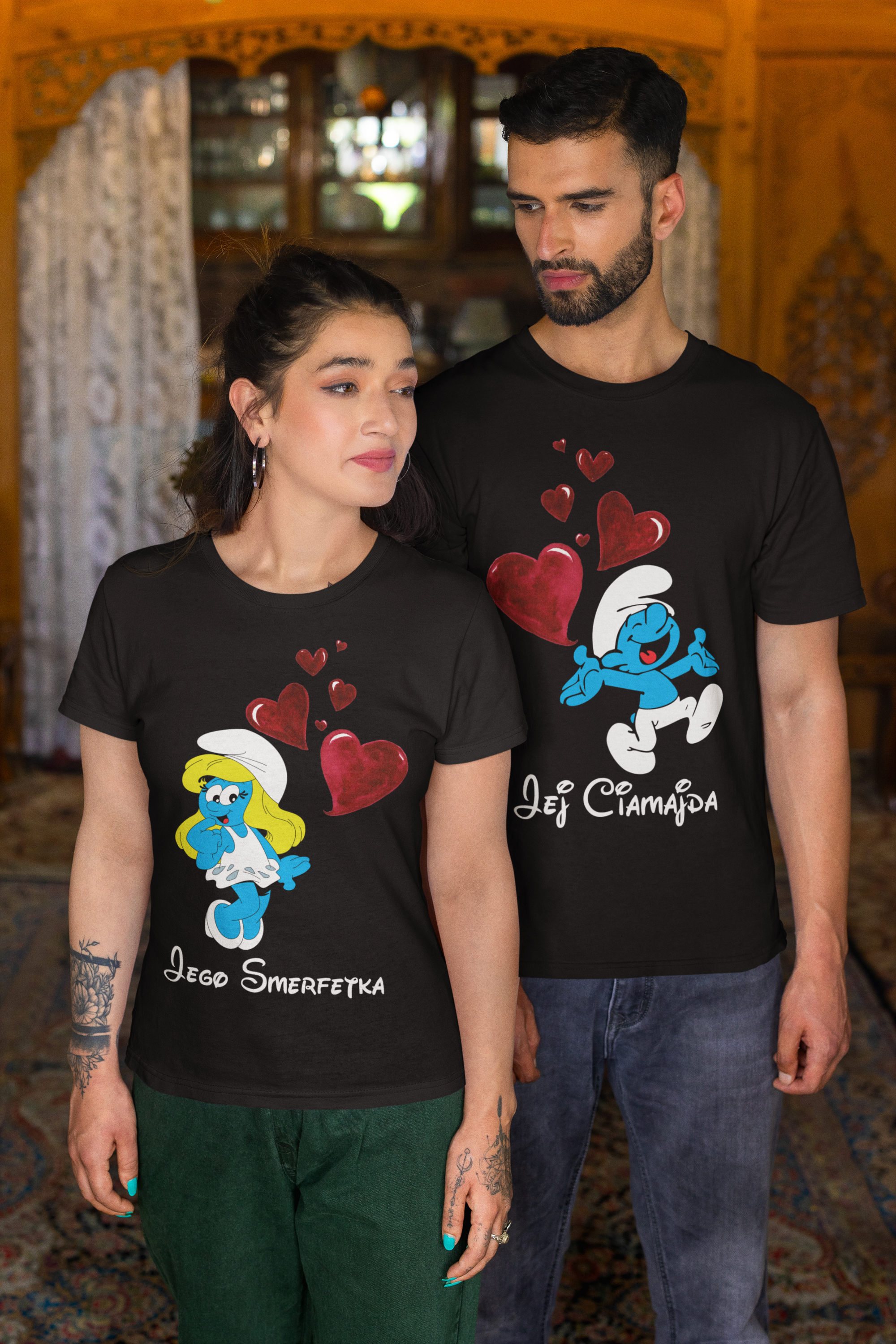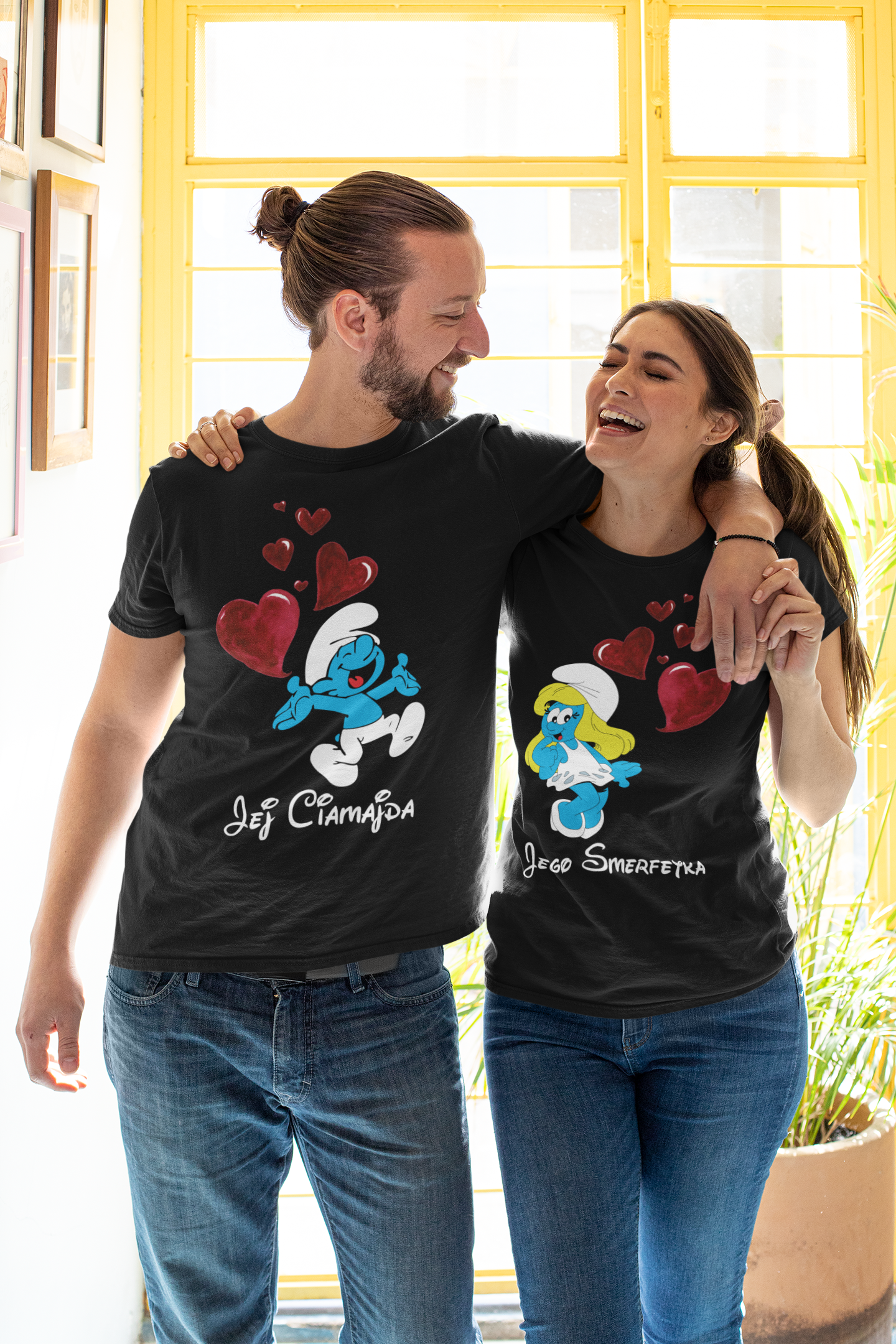 ZESTAW KOSZULEK WALENTYNKOWYCH LOVE PREZENT NA WALENTYNKI DLA PARY SMERFETKA I CIAMAJDA SMERFY