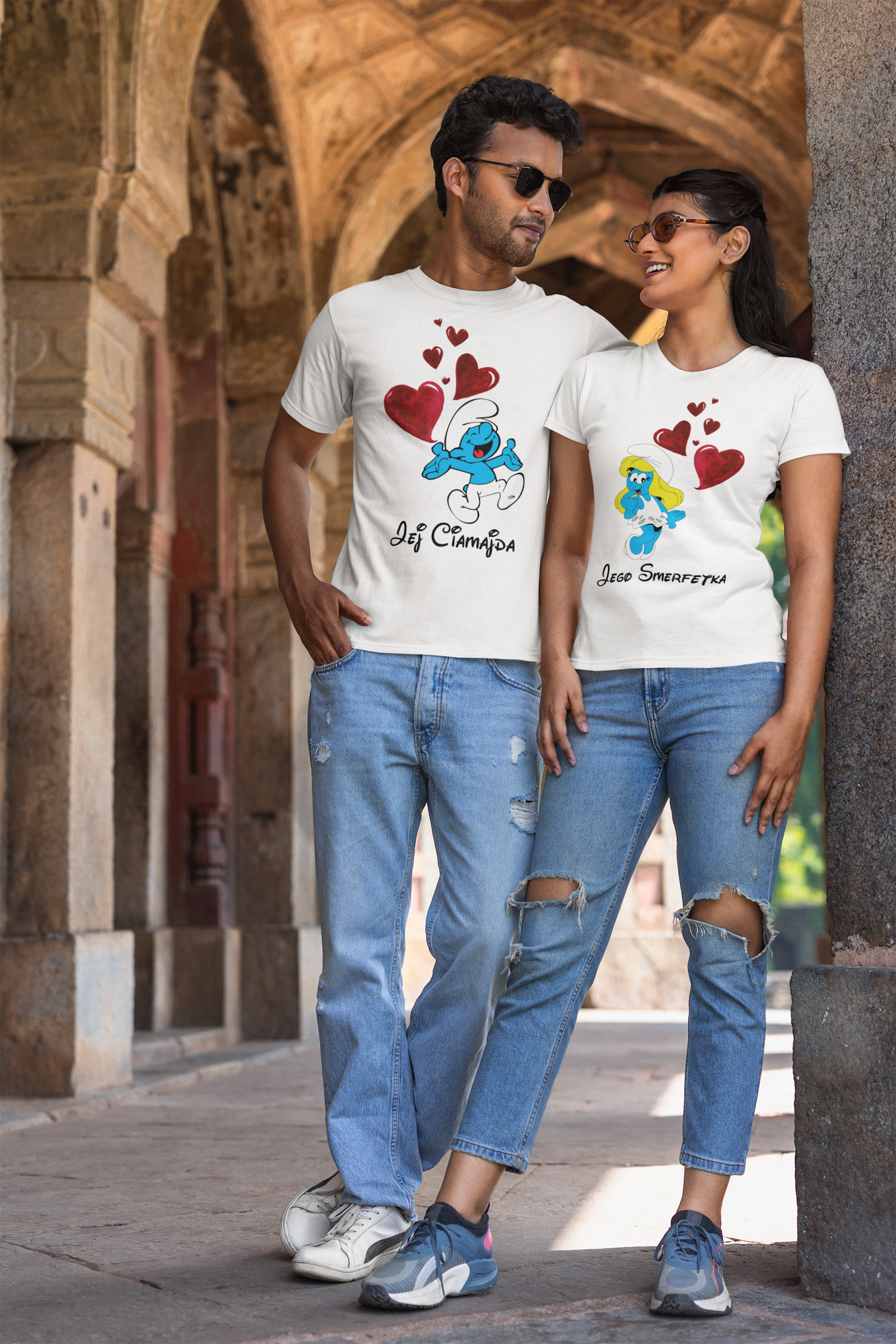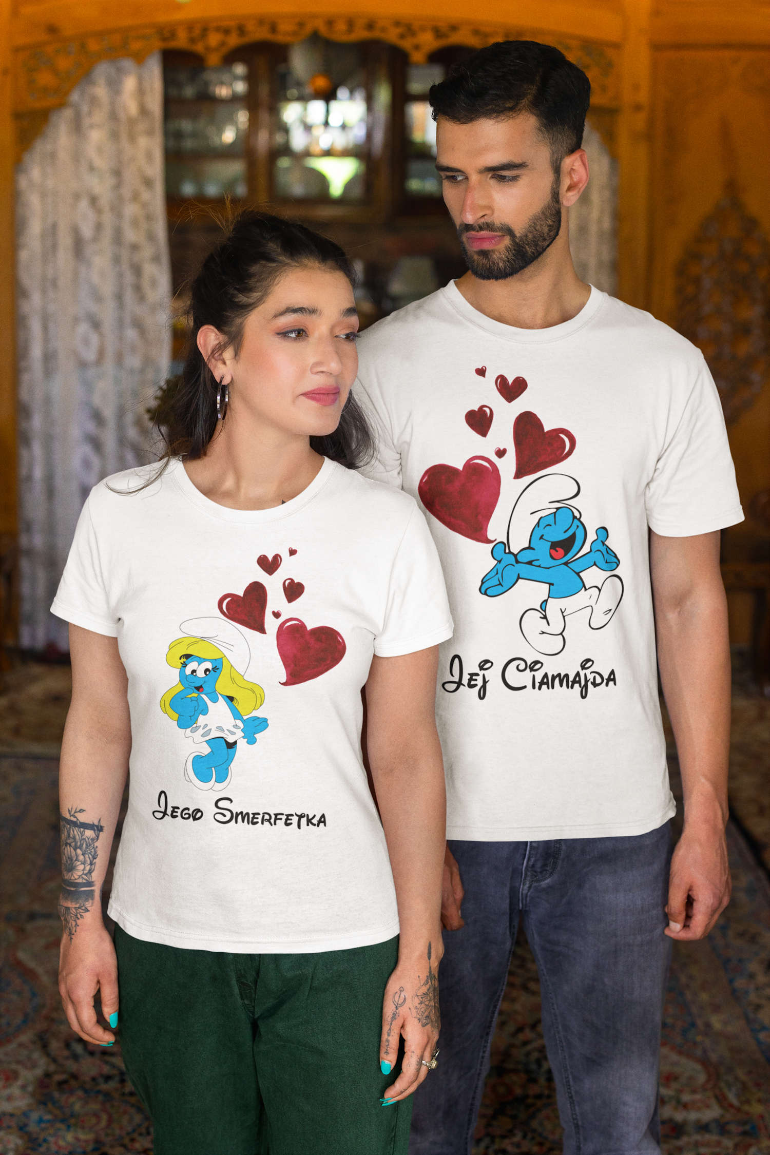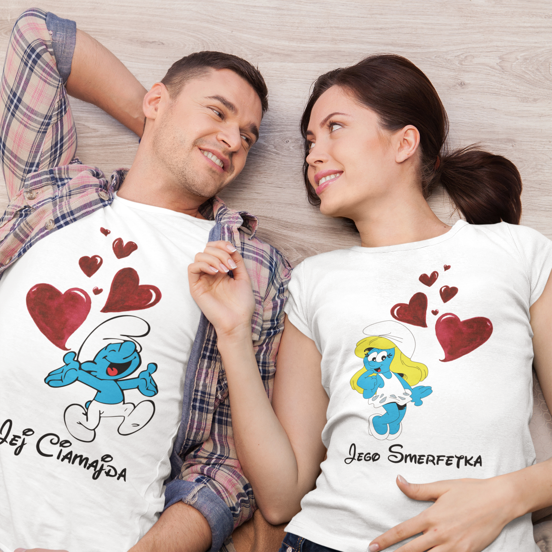 ZESTAW KOSZULEK WALENTYNKOWYCH LOVE PREZENT NA WALENTYNKI DLA PARY SMERFETKA I CIAMAJDA SMERFY