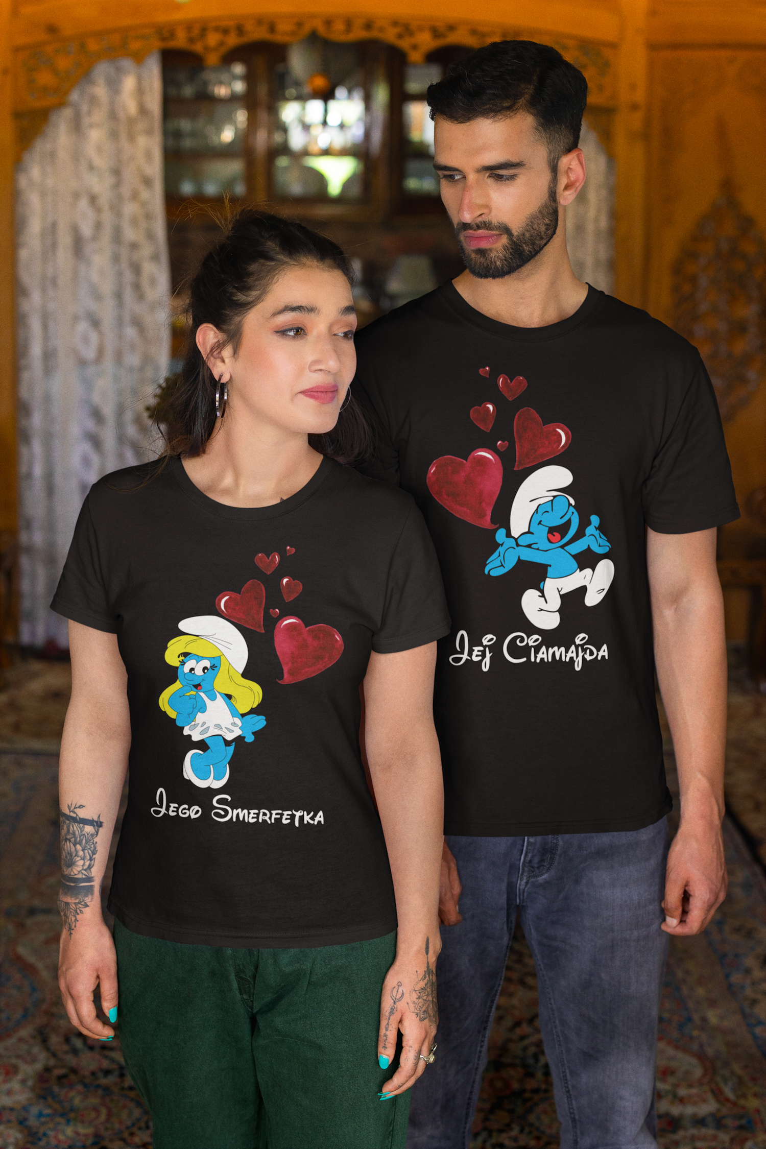 ZESTAW KOSZULEK WALENTYNKOWYCH LOVE PREZENT NA WALENTYNKI DLA PARY SMERFETKA I CIAMAJDA SMERFY