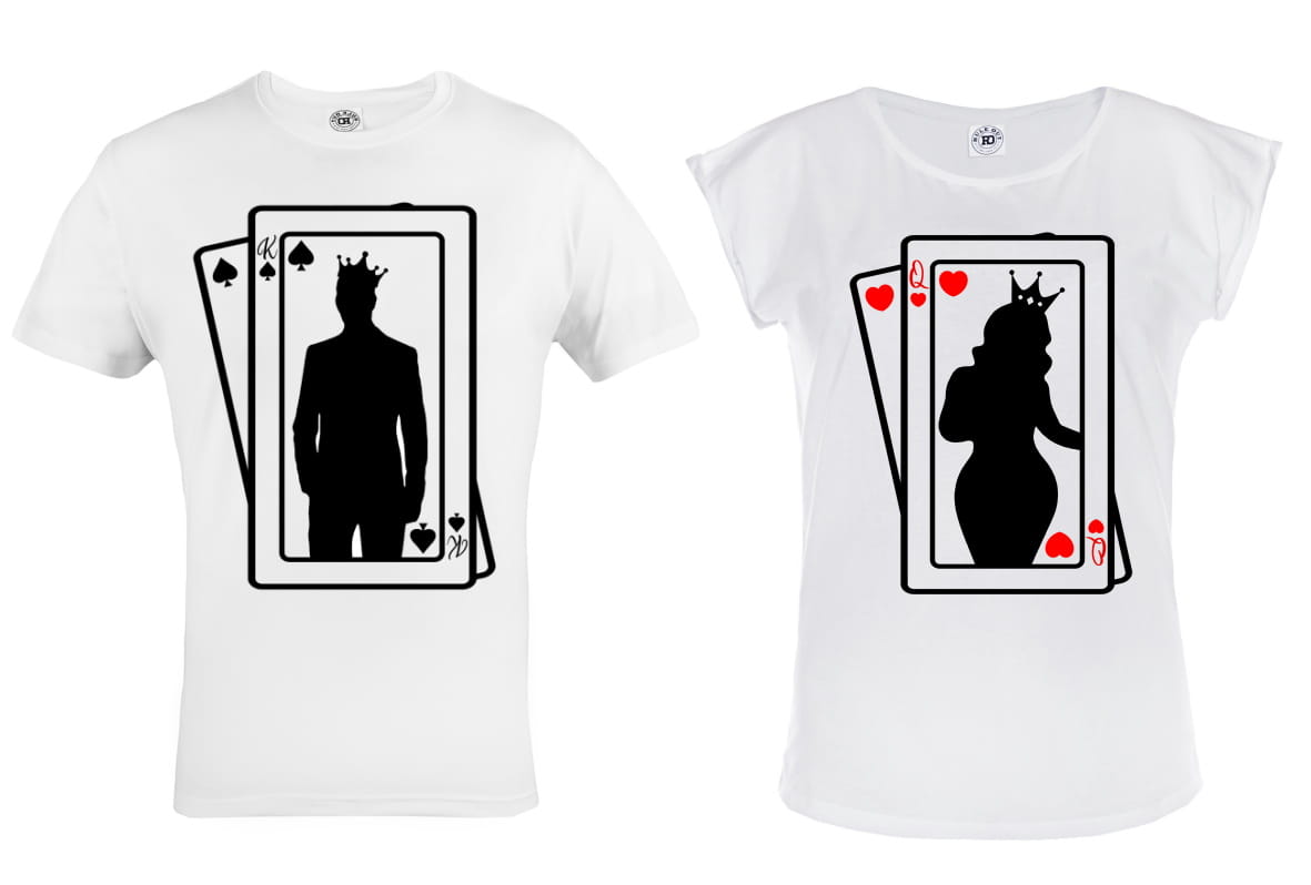 ZESTAW KOSZULEK WALENTYNKOWYCH LOVE PREZENT NA WALENTYNKI KARCIANA KRÓLOWA I KRÓL