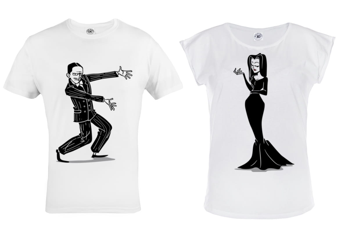 ZESTAW KOSZULEK WALENTYNKOWYCH PREZENT NA WALENTYNKI RODZINA ADDAMSÓW MORTICIA I GOMEZ