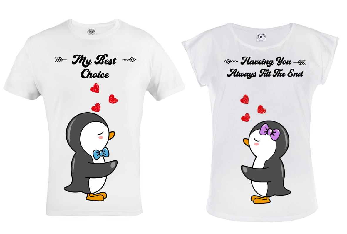 ZESTAW KOSZULEK WALENTYNKOWYCH PREZENT NA WALENTYNKI ZAKOCHANE PINGWINY